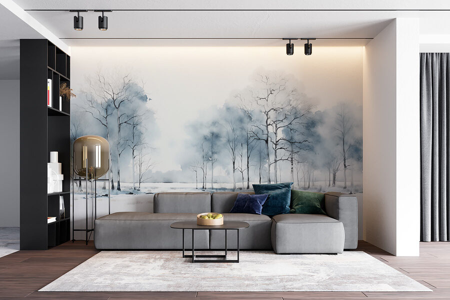 Transforma cualquier pared en un remanso de paz con este encantador mural de un campo nevado salpicado de árboles. Imagínese esto: en una fría tarde, se acurruca con un libro mientras esta tranquila escena envuelve su espacio. Los suaves tonos azules y blancos crean una atmósfera relajante, perfecta para descansar o incluso para la contemplación tranquila. Es como llevar un poco de la magia del invierno al interior, ¡sin pasar frío en los pies! Tanto si es un amante de la naturaleza como si solo busca iniciar una conversación, este mural le invita a hacer una pausa, respirar y disfrutar de un poco de paz en su propia casa.