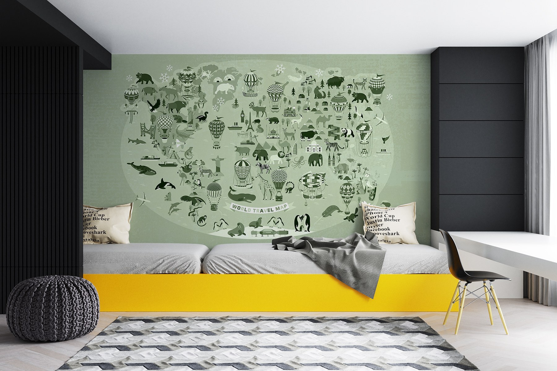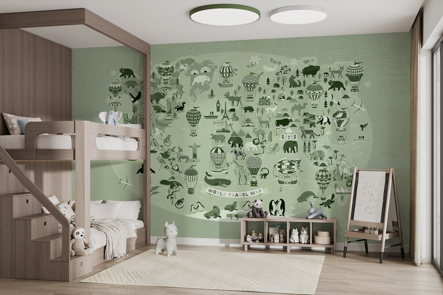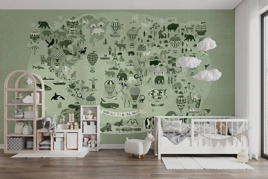 Transforma cualquier habitación en una mini aventura con el «Mural de pared Mapa del mundo». Este divertido mural está repleto de criaturas fantásticas y monumentos emblemáticos, lo que lo convierte en tu propio mapa del tesoro lleno de descubrimientos. Imagínate sentándote en tu lugar favorito, con un café en la mano, y dejando que tus ojos se pierdan en las coloridas ilustraciones, desde globos aerostáticos hasta adorables animales que parecen listos para saltar de la pared. Es como tener un tema de conversación que también inspira sueños despiertos de lugares lejanos. Perfecto para un rincón de lectura acogedor o una divertida sala de juegos, añade un toque de creatividad y curiosidad, invitando a todos a explorar el mundo, ¡desde casa! Un mural como este hace que quedarse en casa sea como viajar por el mundo, sin tener que hacer las maletas.