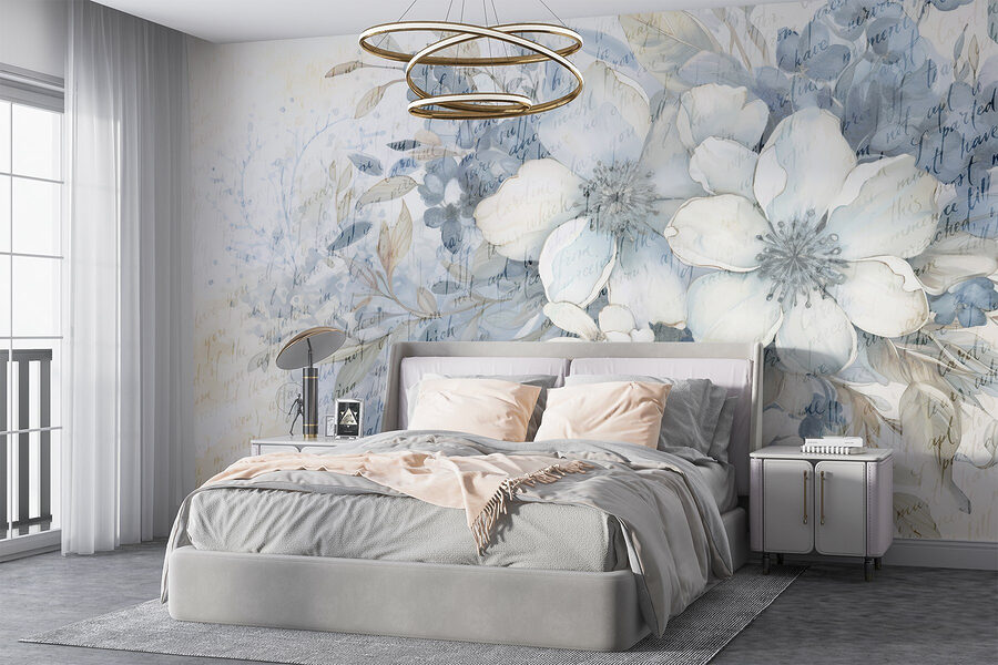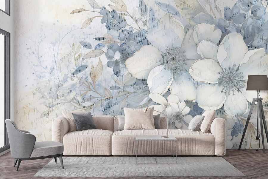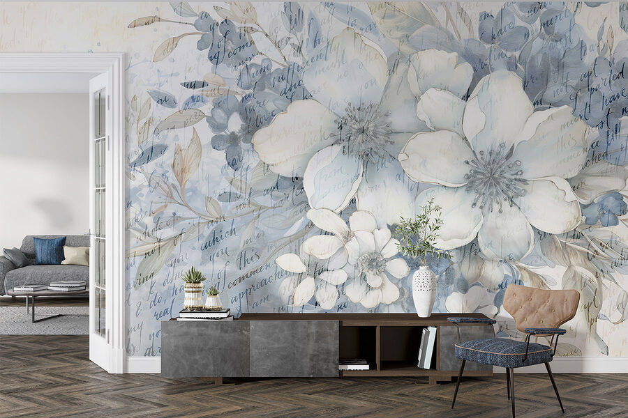 Transformar una pared aburrida en un paraíso floreciente es tan fácil como con este «Mural de flores y hojas». Con suaves tonos acuarelados que bailan por toda la superficie, invita a dar un toque de naturaleza a cualquier espacio. Imagina relajarte en tu salón, rodeado de estas relajantes flores, tomando café en una tranquila mañana de domingo. ¡Hay algo encantador en ver flores que no se marchitan! Además, los sutiles toques de texto añaden un poco de intriga, como un poema susurrado en voz baja. Perfecto para los amantes de la naturaleza o para cualquiera que quiera añadir un toque fresco a su decoración. ¿Quién no sonreiría al verlo?