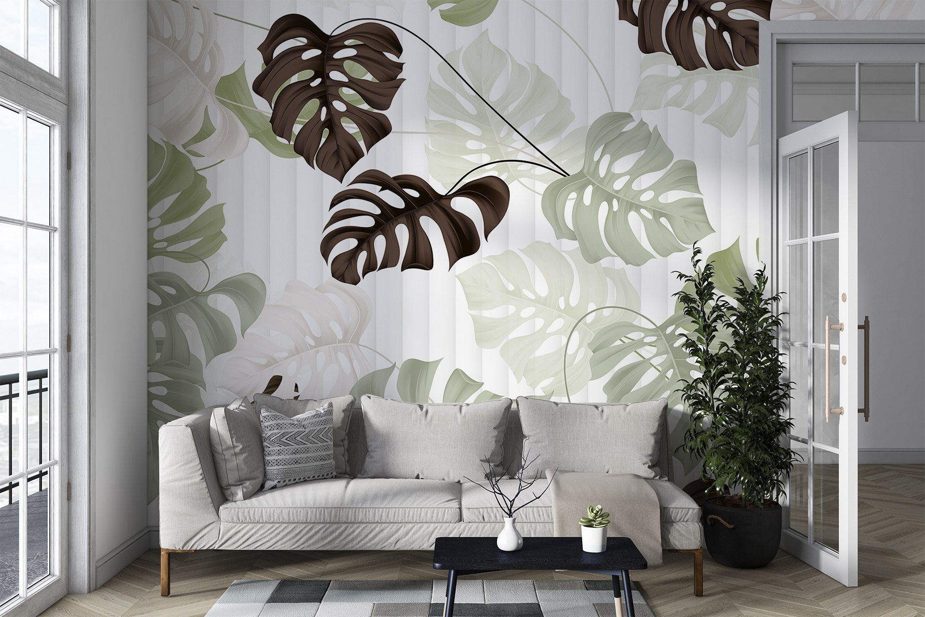 Transform any space with this stunning mural—a playful pattern of leaves dancing on a crisp white background. It’s like bringing a little slice of nature right into your home, minus the bugs and dirt. Imagine settling into your cozy corner, a warm cup of coffee in hand, and feeling that instant calm wash over you. The gentle greens and earthy browns are perfect for adding a splash of life without being too loud. It’s not just decoration; it’s an experience, a fresh breath in every corner. So why not let your walls tell a story? They might just inspire your next adventure!