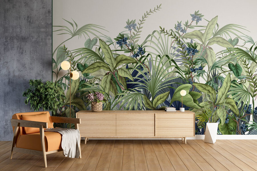 Transforma tu espacio en un santuario sereno con este vibrante mural «La exuberante vegetación crea un ambiente tranquilo». Imagina entrar en una habitación donde las exuberantes hojas y las delicadas flores te dan la bienvenida cada día: ¡eso sí que es calma instantánea! Este diseño lleva la frescura de la naturaleza al interior, haciendo que incluso un lunes se sienta como una acogedora escapada de fin de semana. La mezcla de verdes vivos y azules suaves crea un fondo que susurra relajación. Tus invitados pensarán que vives en un paraíso tropical. Además, ¿a quién no le gustaría sentirse rodeado de un pequeño bosque mientras toma su café matutino? Perfecto para cualquier espacio que necesite un toque de calidez, ¡es como un pedacito de la maravilla de la naturaleza en tu pared!