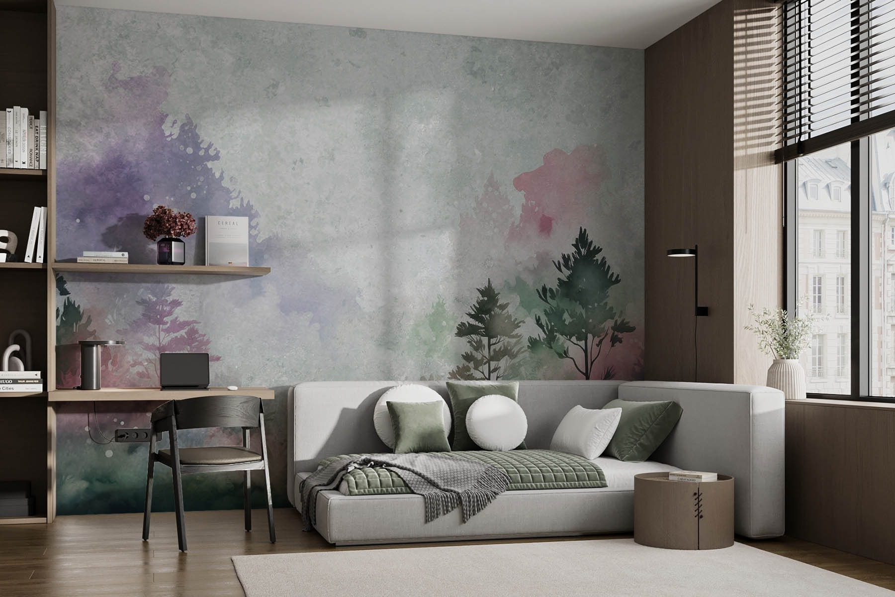 Transforme cualquier habitación en una escapada serena con este impresionante mural de árboles y plantas. Imagínese adentrándose en un bosque tranquilo desde la comodidad de su salón, donde los tonos suaves y las pinceladas suaves crean una atmósfera que susurra relajación. Imagínese los domingos por la mañana tomando café, rodeado de la belleza de la naturaleza, sin necesidad de botas de montaña. Las acuarelas añaden un toque artístico, por lo que son perfectas tanto para galerías como para rincones acogedores. Con sus profundidades de ensueño y su sensación natural, este mural invita a la calidez y la tranquilidad en cualquier espacio. ¿Quién no querría eso?