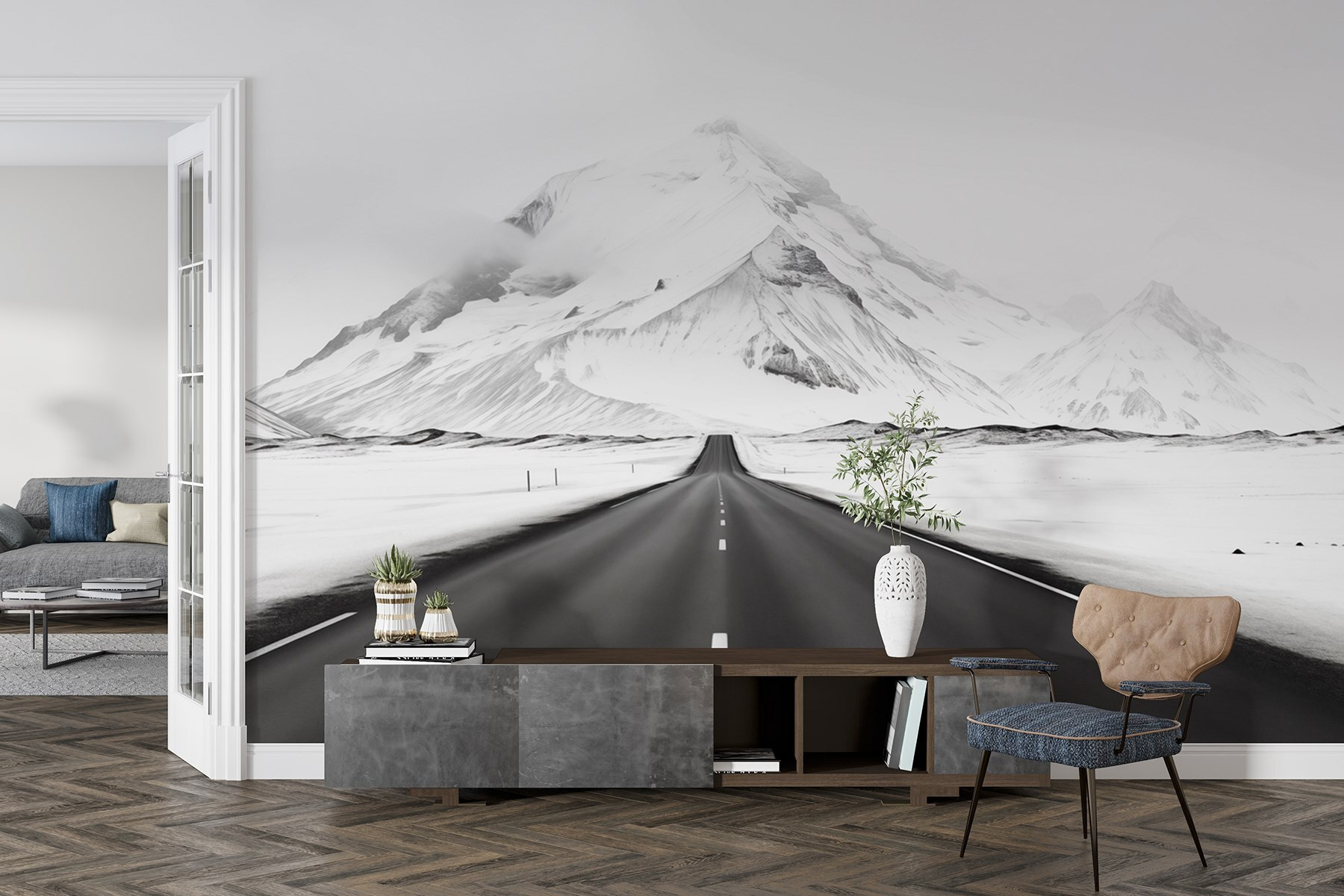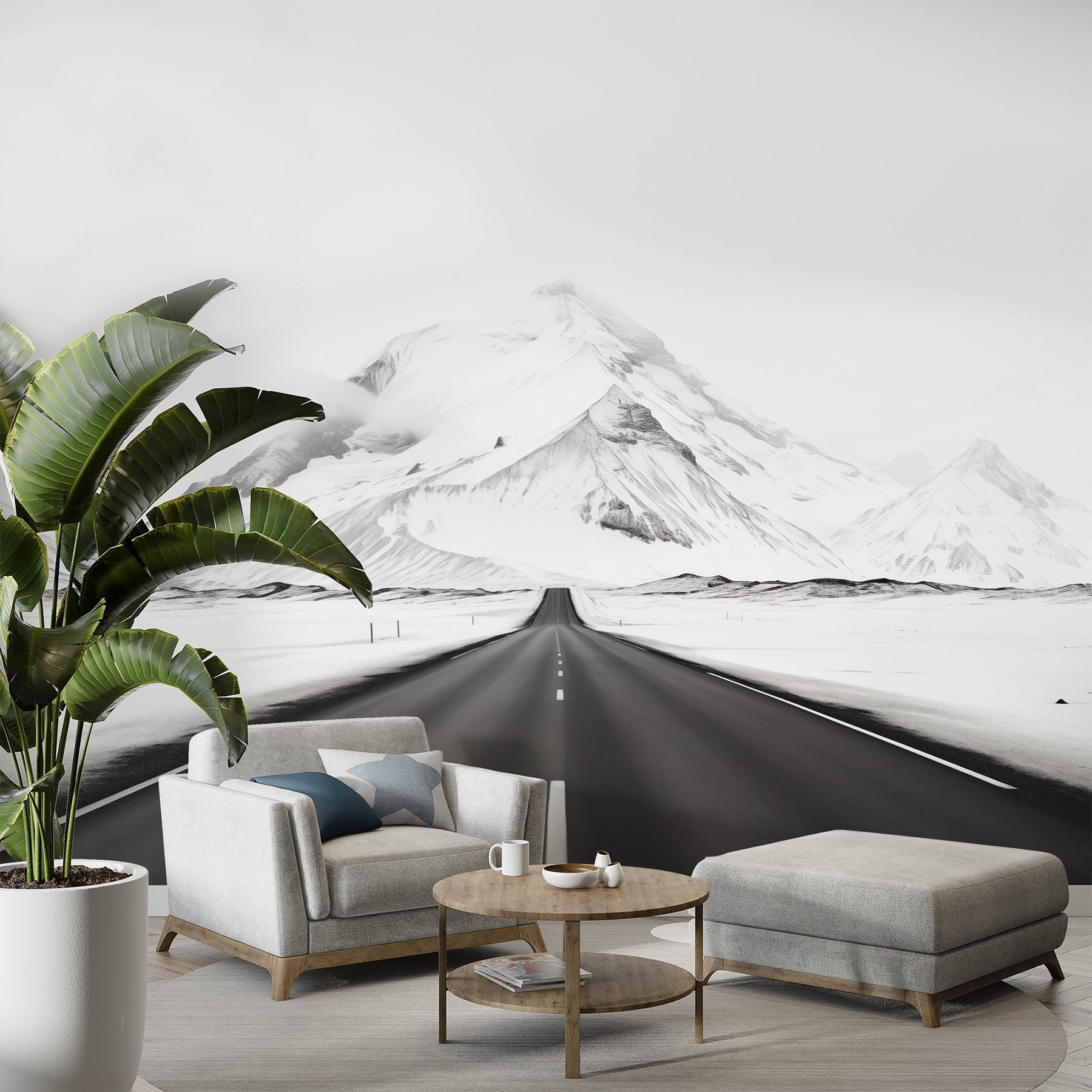 Transforme cualquier habitación en un paraíso invernal con este impresionante mural de pared. Imagínese una vasta carretera abierta que se extiende hacia majestuosas montañas nevadas, invitándole a explorar el aire libre. Los tonos fríos te atraen y hacen que cualquier espacio resulte fresco y acogedor. Imagina que te acurrucas con una bebida caliente, contemplando esta vista serena y sintiendo ese frío pacífico en el aire, incluso cuando estás cómodamente dentro. Es como tener un trozo de aventura justo en tu pared, inspirando sueños de viajes espontáneos por carretera y excursiones heladas. Perfecto para los amantes de la naturaleza o para cualquiera que quiera añadir un toque de calma a su decoración.
