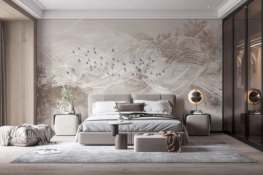 Imagínese entrar en un espacio sereno donde el cielo se encuentra con sus paredes. Este mural, con delicados pájaros azules que se elevan a través de suaves nubes blancas, crea un ambiente aireado que se siente como un soplo de aire fresco. Imagínatelo iluminando un acogedor rincón de lectura o añadiendo un toque de tranquilidad a un ajetreado pasillo. Las suaves líneas fluyen casi como una brisa calmante, haciendo que cualquier habitación parezca más espaciosa y acogedora. No es sólo decoración; es un dulce recordatorio de que, a veces, todo lo que hace falta es un poco de naturaleza para levantar el ánimo. Perfecto tanto para los que sueñan despiertos como para los amantes de la naturaleza, este mural te invita a hacer una pausa y simplemente disfrutar de la vista, sin necesidad de prismáticos.