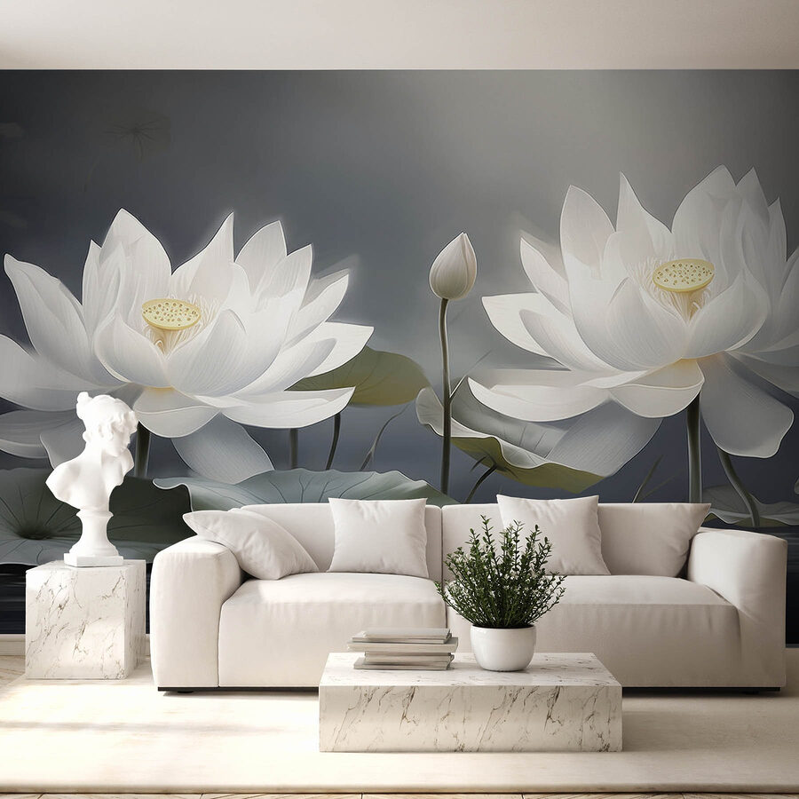 Transforme cualquier habitación con este impresionante mural de pared que muestra un elegante grupo de flores blancas flotando en agua tranquila. Es como traer un jardín sereno a su espacio vital, sin el barro y los insectos, por supuesto. Imagínese tomando un café mientras contempla estas elegantes flores, cada pétalo susurrando tranquilas vibraciones. Perfecto para un rincón acogedor o un dormitorio de ensueño, añade un toque suave que puede calmar incluso las mentes más ocupadas. Además, da mucho que hablar; los invitados te preguntarán dónde has encontrado semejante joya. Decora con un toque de belleza natural, porque ¿quién no querría flores todos los días?