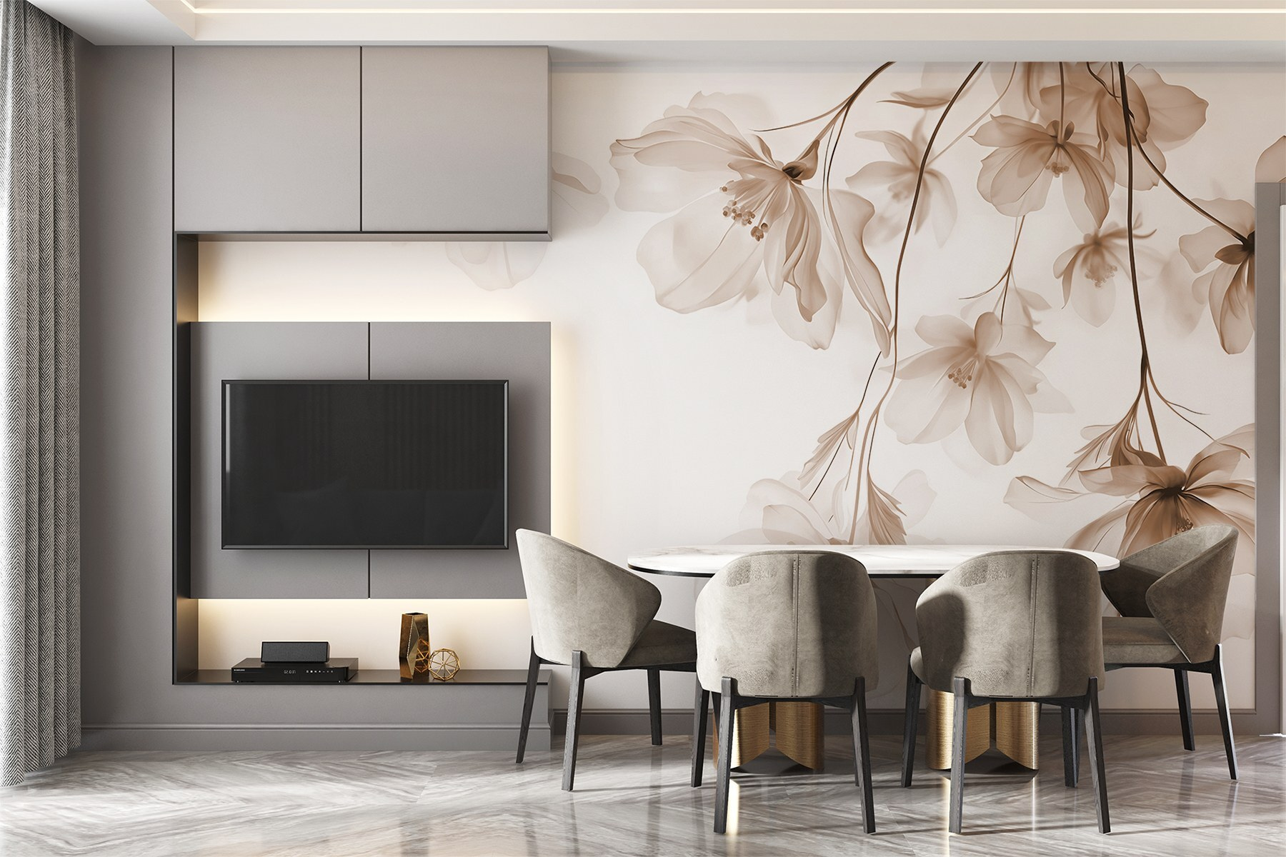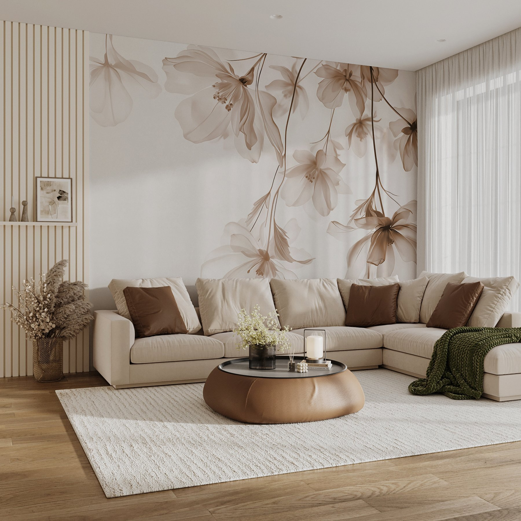 Transforme cualquier espacio con este impresionante mural de pared con delicadas flores en tonos suaves. Imagina entrar en un sereno jardín desde tu salón: cada flor susurra tranquilidad como si la pintura de la naturaleza hubiera cobrado vida. No es sólo decoración, es una experiencia. Imagínese recibiendo a amigos, y sus conversaciones se desvanecen en el fondo mientras admiran esta hermosa vista. Los suaves colores aportan calidez a la habitación, haciéndola más abierta y acogedora. Perfecto para crear ese ambiente de retiro tranquilo. Un trocito de paraíso en la pared.