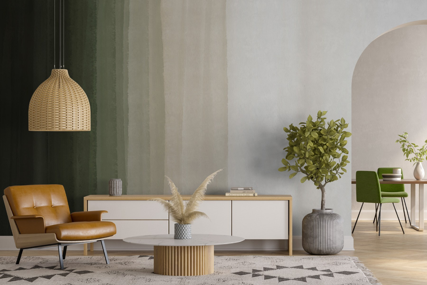 Transforme cualquier habitación con este precioso mural, Tonos sutiles de la paleta de la naturaleza. Imagínatelo: suaves pinceladas de verdes y tonos tierra que envuelven tus paredes como un cálido abrazo. Es como llevar la calma de un bosque sereno al interior, sin tener que preocuparse por el tiempo. Imagina tardes acogedoras, tal vez con una taza de té, y ese telón de fondo relajante creando una atmósfera de paz instantánea. No necesita la decoración más elegante: este mural destaca sin esfuerzo. Perfecto para cualquiera que desee añadir un toque de belleza natural a su espacio. ¿Quién no se sentiría un poco más relajado aquí?