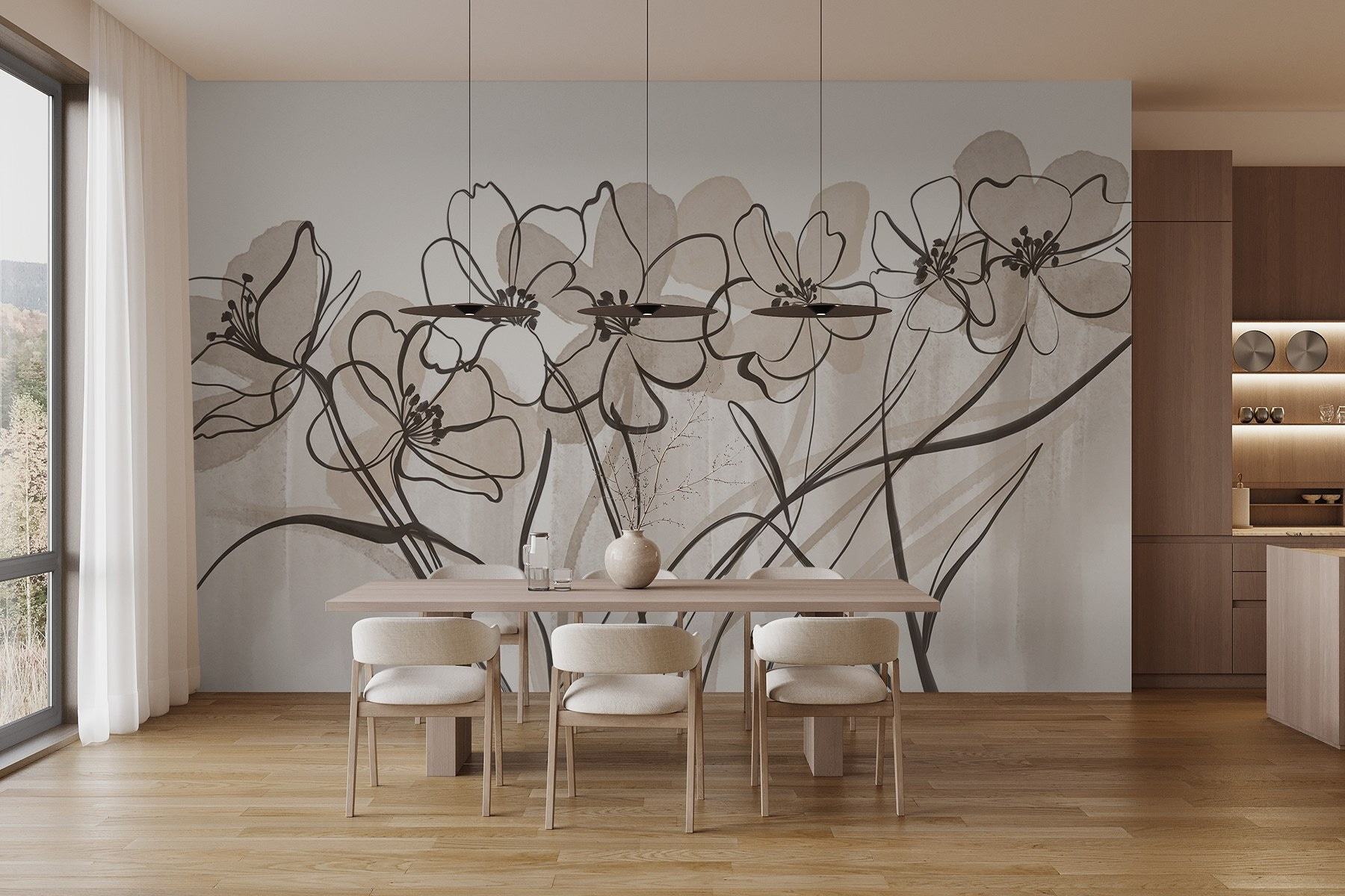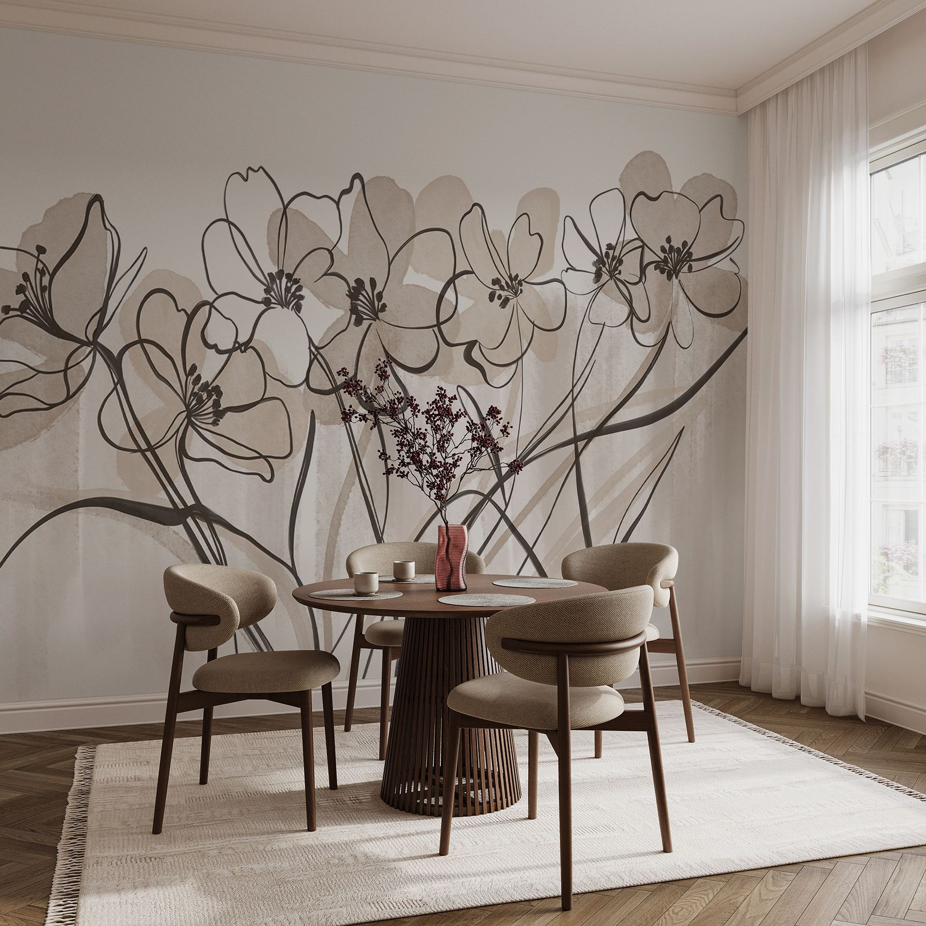 Ilumine su espacio con este precioso mural de pared que presenta una delicada línea de flores bailando sobre un suave fondo blanco. Imagine que entra en una habitación donde la belleza de la naturaleza se instala, calmando su mente incluso en los días más ajetreados. Las suaves pinceladas de acuarela crean un ambiente relajante, perfecto para un rincón acogedor o un despacho tranquilo. Es como tener un pequeño jardín en la pared, ¡sin la regadera! Tus amigos pensarán que eres un encantador de la naturaleza. ¿Por qué no añadir un toque de elegancia y fantasía a tus paredes?