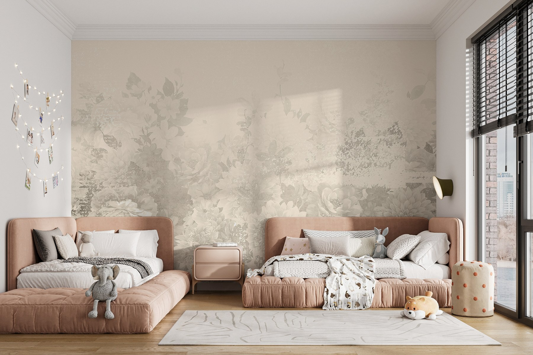 Tanto si se trata de un rincón acogedor como de una vibrante sala de estar, este mural añade un toque de fantasía que hará que sus invitados se queden boquiabiertos. Los motivos florales aportan vida y energía: ¿a quién no le gustaría que el encanto de las flores le alegrara el día? Es un toque artístico que resulta refrescante y acogedor, como el cálido abrazo de un amigo.