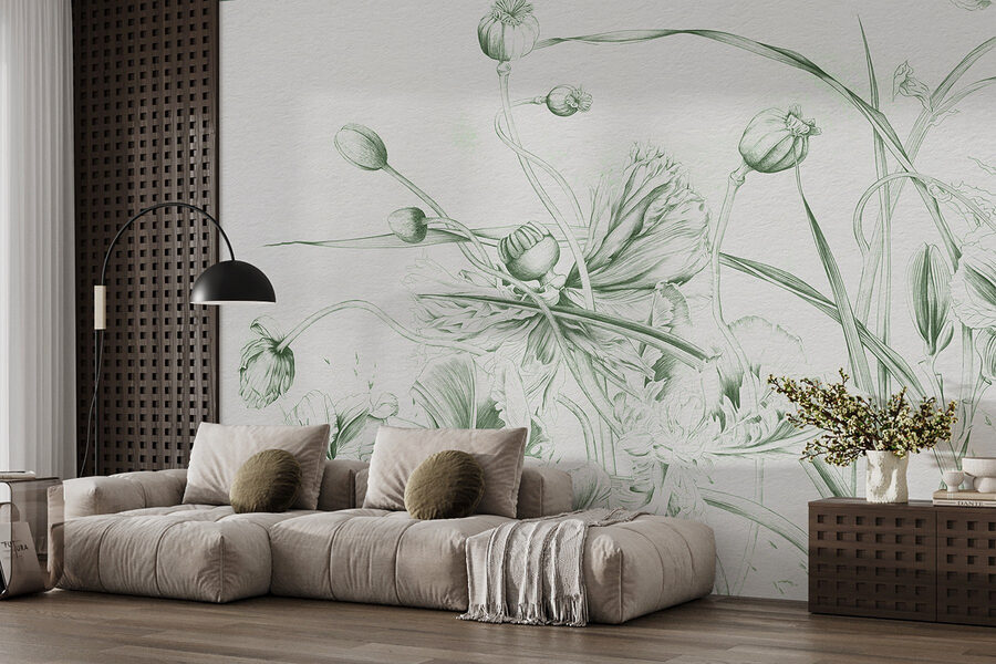 Transforme cualquier habitación en un acogedor refugio con este impresionante mural de pared que presenta una delicada danza de flores y hojas. Imagínese tomar un café rodeado de obras de arte de la naturaleza: ese suave toque de verdor hace maravillas para el alma. Es como llevar un sereno jardín al interior, sin tener que preocuparse de regarlo o de los molestos insectos. Ya sea en un salón, un dormitorio o incluso un pasillo, este mural invita a la calidez y la calma. Y puntos extra por inspirar la creatividad. Perfecto tanto para los que sueñan despiertos como para los amantes del arte. Es como tener una galería botánica en la pared.