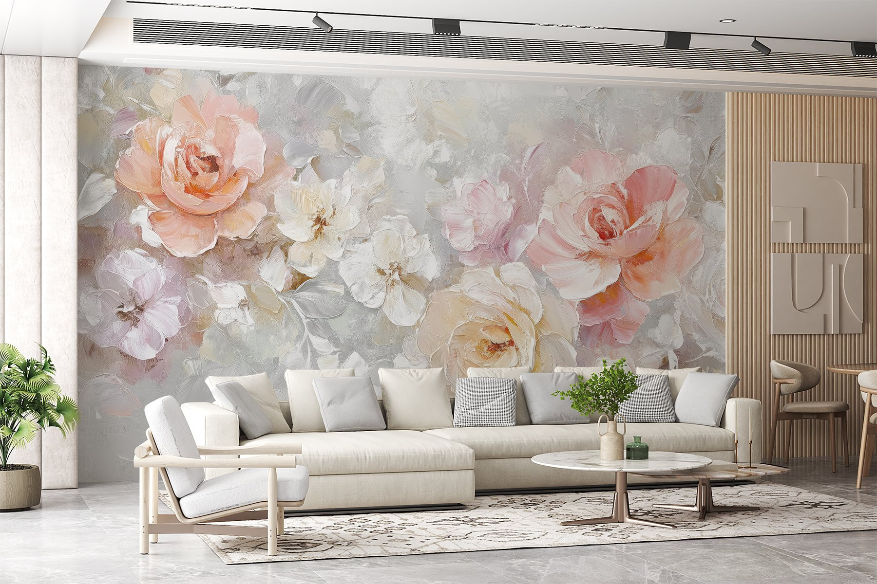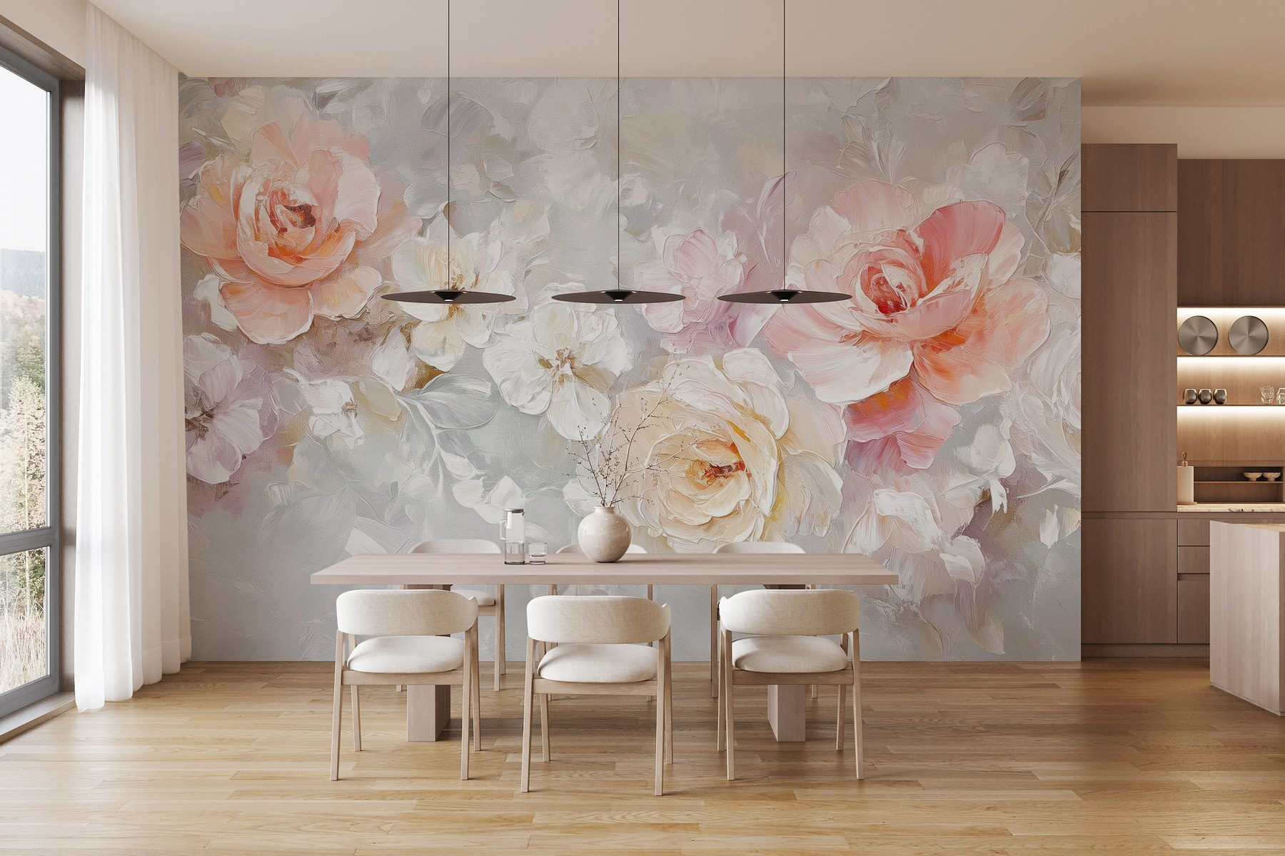 Transforme su espacio con este hermoso mural de flores sobre un suave fondo blanco. Imagina entrar en un jardín cada día, donde los delicados pétalos florecen solo para ti. Los colores suaves crean un ambiente tranquilo, perfecto para un rincón de lectura acogedor o una cocina alegre. Imagínate a tus amigos reunidos admirando las obras de arte y sintiéndose un poco más felices. Es como traer un trozo de naturaleza al interior, sin necesidad de regar ni del molesto polen. Pura alegría visual: ¿quién iba a decir que un mural podría elevar tanto el estado de ánimo?