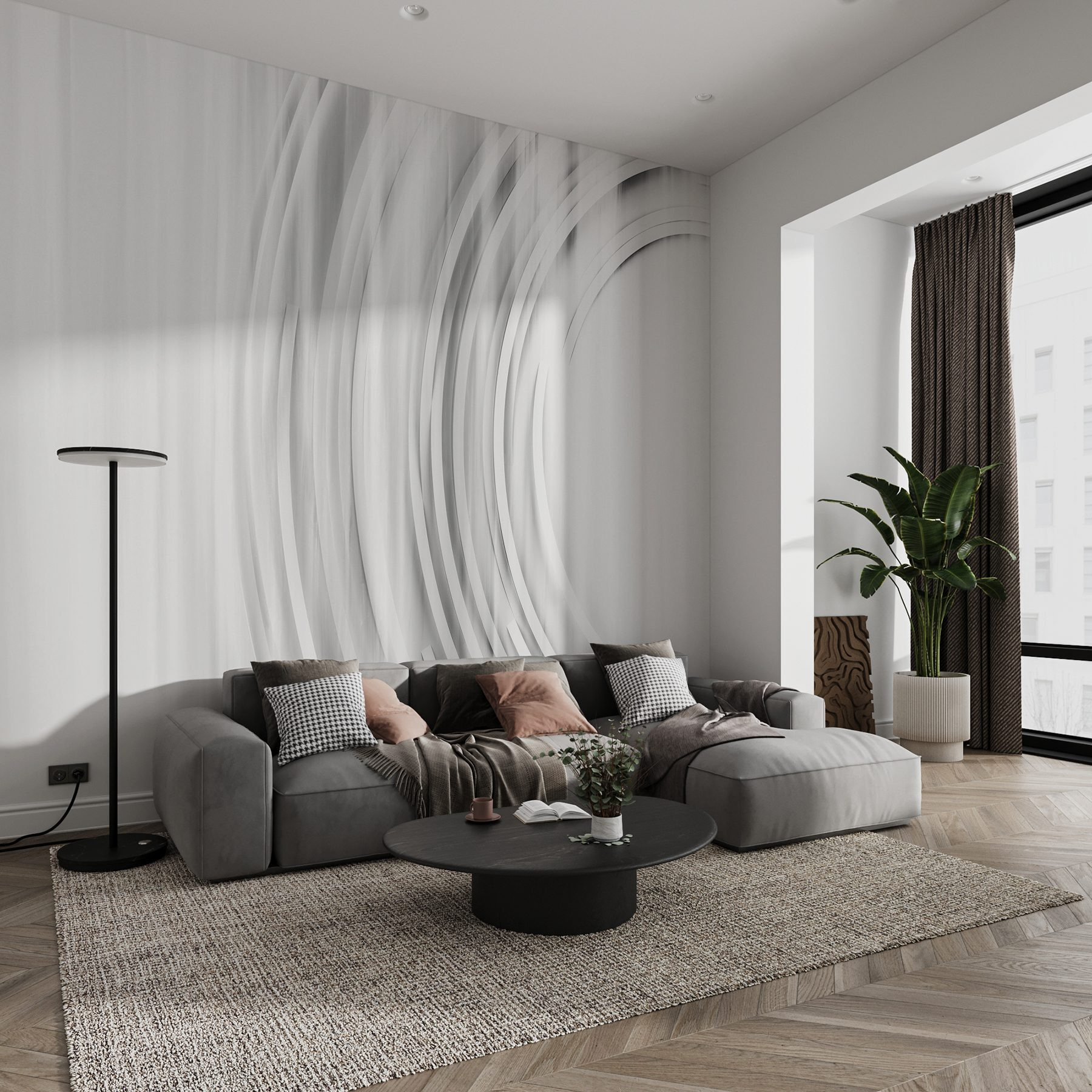 Transforme su espacio con este cautivador mural, con un fondo blanco y gris adornado con círculos fluidos. Es como tener una pieza de arte moderno que da vida a sus paredes. Imagínese que entra en una habitación aireada y sofisticada, un santuario donde la creatividad es la protagonista. Las suaves curvas invitan a la exploración, despertando una sensación de tranquilidad. Ya sea en una acogedora sala de estar o en una oficina elegante, este mural une todo sin esfuerzo. Es ese susurro de estilo que dice: “Tienes gusto”. Perfecto para quienes aprecian la elegancia sutil con un toque especial.