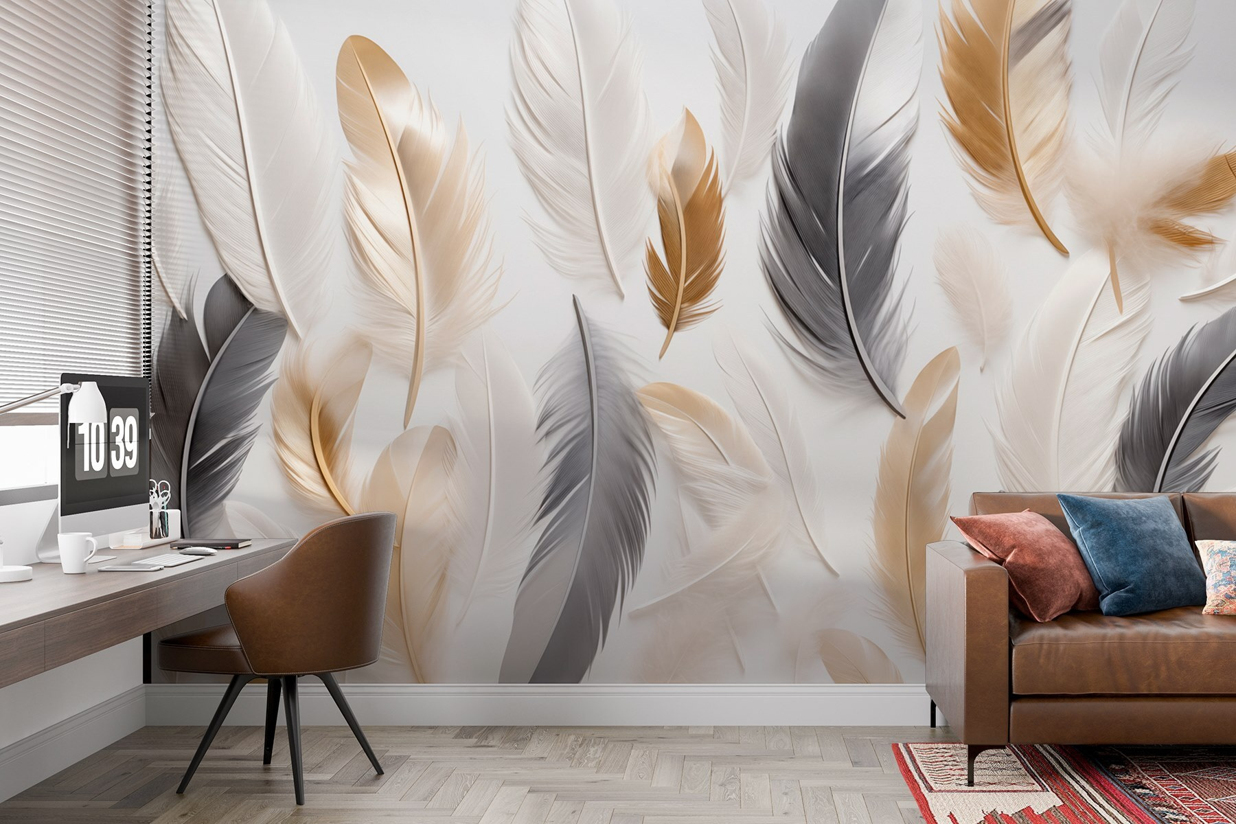 Transforme cualquier habitación con este impresionante mural de pared que presenta una hermosa disposición de plumas sobre un fondo blanco nítido. Es como traer un ambiente alegre y desenfadado a su hogar. Imagínese despertarse cada mañana con este elegante diseño, que le recordará los tranquilos días que pasa al aire libre. La mezcla de tonos de plumas da una sensación de profundidad: cada uno parece tener su propia personalidad, esperando a que alguien se fije en él. Perfecto para un rincón de lectura acogedor o una entrada con estilo, es el tipo de obra de arte que hará que los invitados se queden boquiabiertos. Deje que sus paredes cuenten una historia, invitando a la calidez y a un toque de naturaleza en su interior.