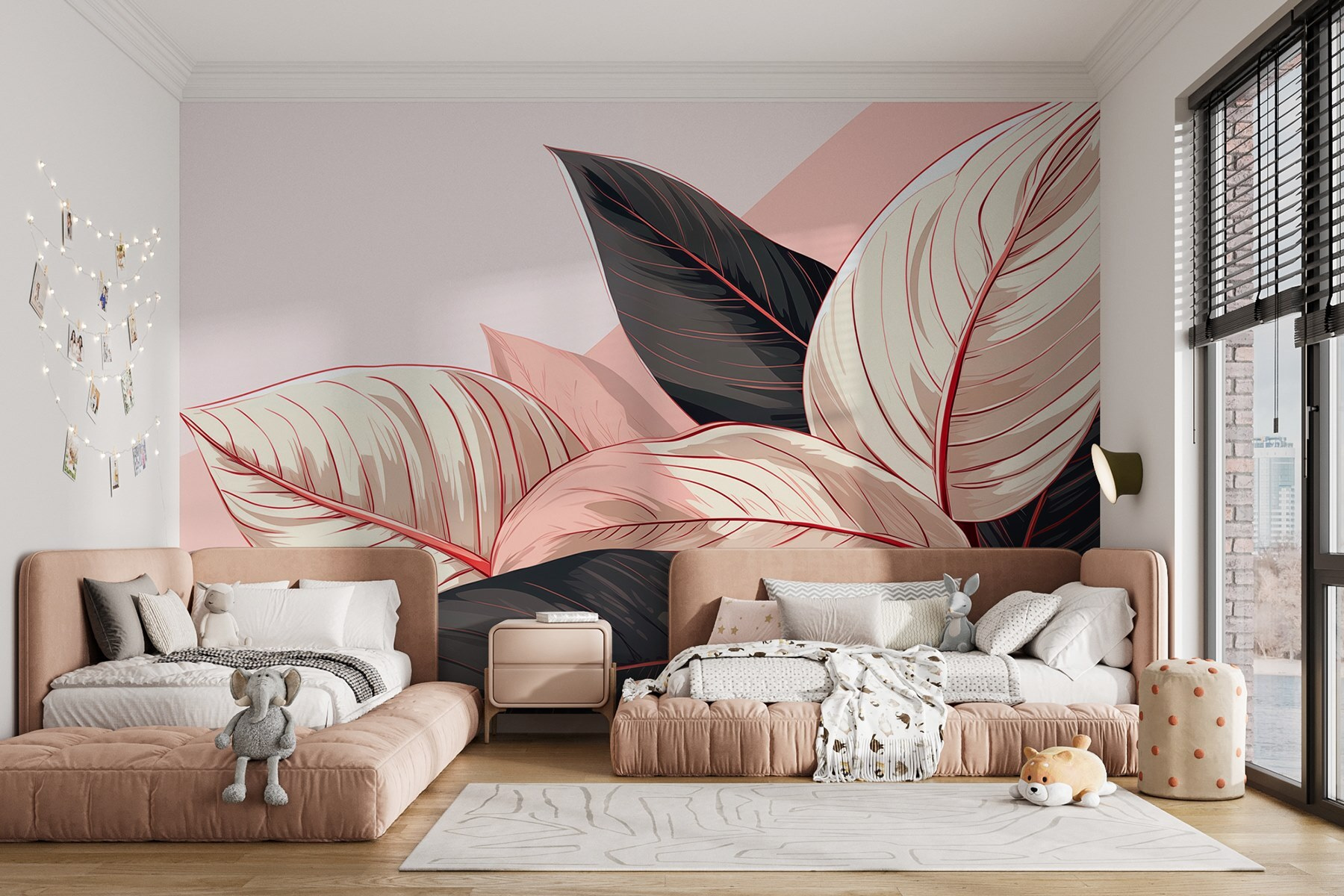 Sumérgete en un oasis de ensueño con el mural “Hojas exuberantes en suaves tonos pastel”. Es como traer una suave brisa de jardín directamente a tu casa. La forma en que esas hojas se envuelven entre sí, con sutiles tonos rosas y verdes, puede transformar fácilmente una pared anodina en un acogedor refugio. Imagina que te acurrucas con un buen libro y te sientes ligeramente transportado a una arboleda tranquila e iluminada por el sol. No es sólo decoración; ¡es magia que mejora el estado de ánimo! Perfecto para cualquier espacio que anhele un toque del encanto de la naturaleza, este mural puede incluso hacer que su “gran pared” estándar se sienta como la estrella del espectáculo. Que empiecen a brotar las hojas y que fluyan las buenas vibraciones.