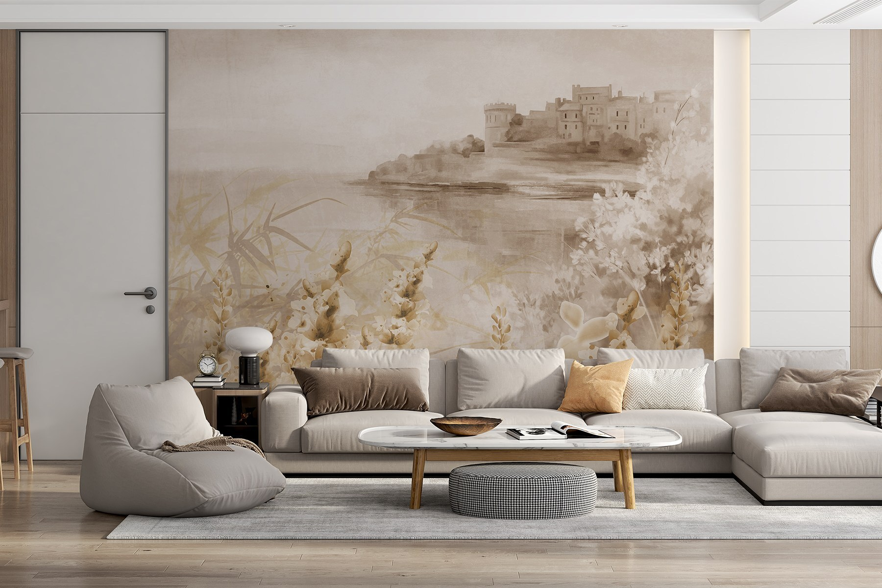 Imagine adentrarse en una serena escapada desde la comodidad de su salón. Este mural de pared, con un castillo de ensueño encaramado a un tranquilo lago, aporta un toque de fantasía a cualquier espacio. Los tonos suaves se mezclan a la perfección con el suave contorno de la naturaleza, haciendo que se sienta relajante, como un campo abierto en una tarde perezosa. Imagínate tardes acogedoras admirando esta obra de arte mientras tomas tu té favorito, dejando que tu mente viaje a mañanas brumosas junto a la orilla del lago. Es como llevar un trocito del encanto de los cuentos de hadas al interior, perfecto para despertar la imaginación y crear un ambiente cálido y acogedor en cualquier habitación. Ya sea un telón de fondo para reuniones familiares o simplemente un lugar tranquilo para soñar despierto, este mural lo hace todo, elevando sin esfuerzo su juego de decoración.
