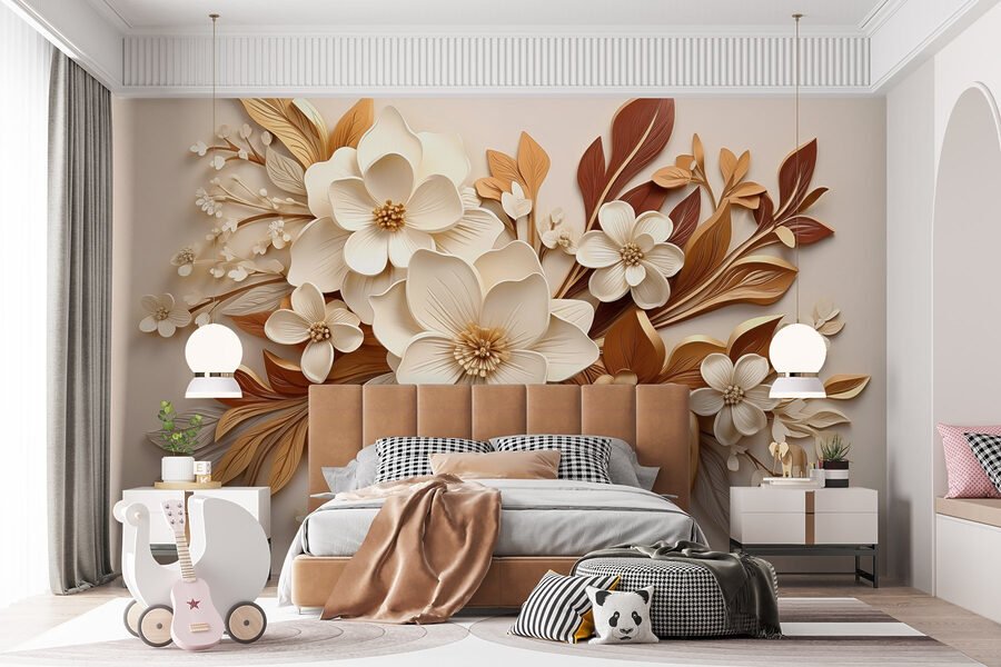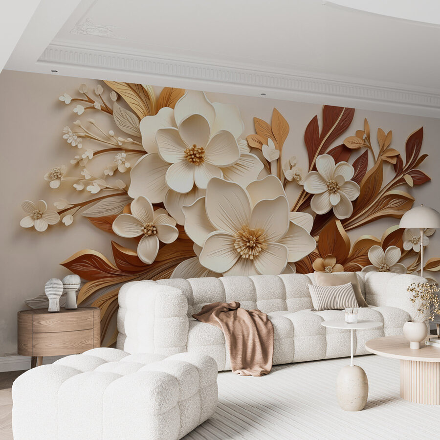 Transforme cualquier espacio con este encantador mural que presenta una deliciosa mezcla de flores blancas y marrones. Imagínese entrar en una habitación que parezca más un jardín iluminado por el sol que unas simples paredes. El diseño susurra calidez y un ambiente acogedor, perfecto para ese rincón donde uno puede acurrucarse con un buen libro o tomar un café mientras sueña despierto. Cada pétalo y cada hoja combinan a la perfección, creando un suave punto focal que invita a la conversación. En serio, ¿te imaginas a tus invitados admirándola? Es como tener un trozo de naturaleza en casa, pero sin polen.