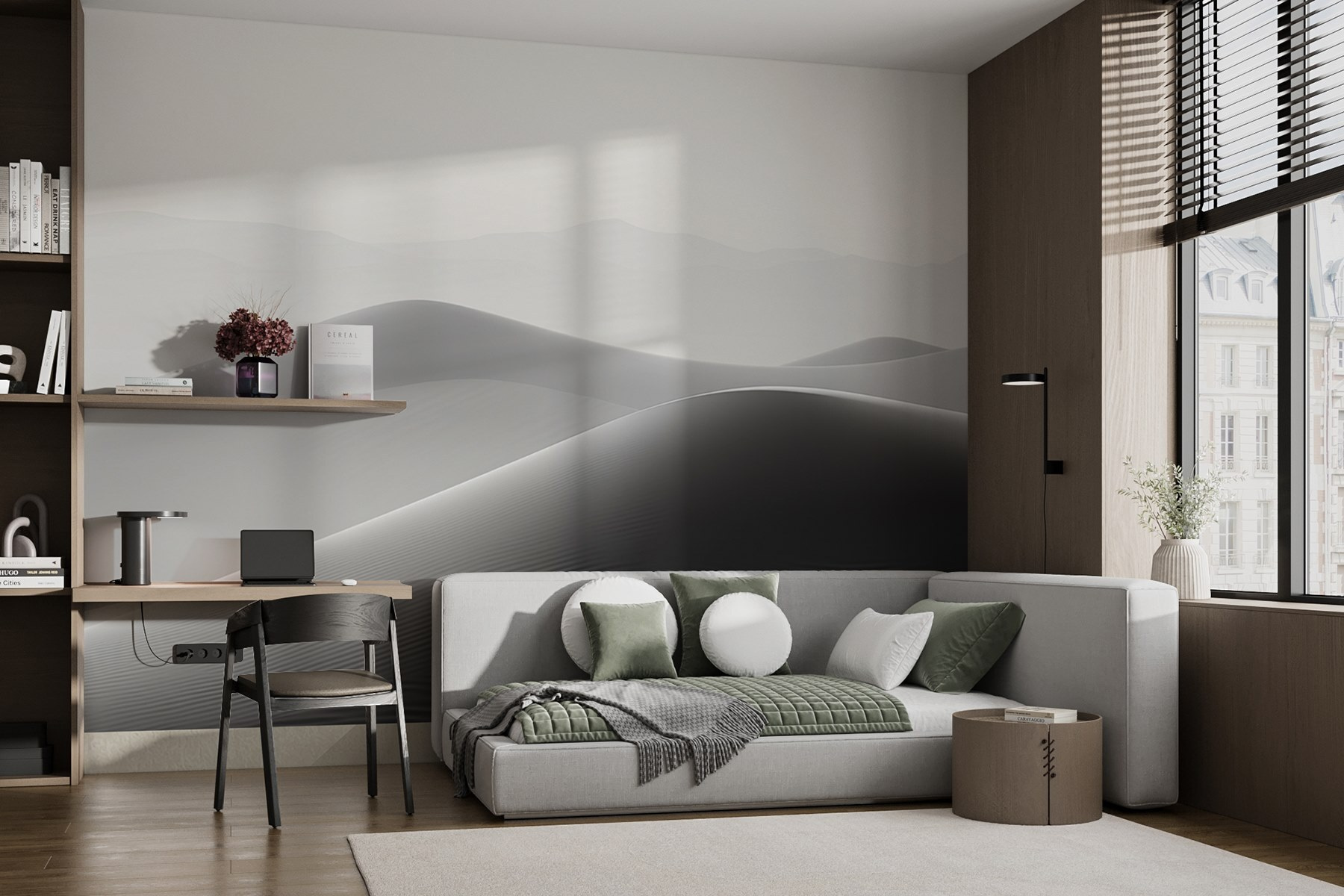 Imagínatelo: tomando un té mientras contemplas los horizontes infinitos. El mural no sólo decora, sino que despierta el deseo de viajar e invita a soñar despierto. ¿Quieres un espacio que susurre tranquilidad? Este es el ganador. Con su discreto encanto, encaja a la perfección en cualquier estilo de decoración, desde el bohemio al moderno. Un trocito de naturaleza, pero sin arena en los zapatos.