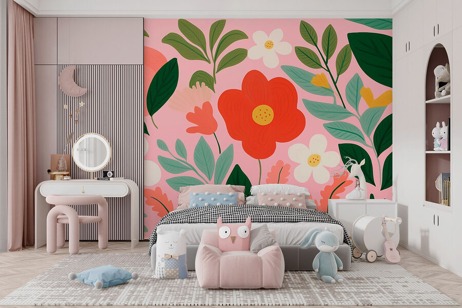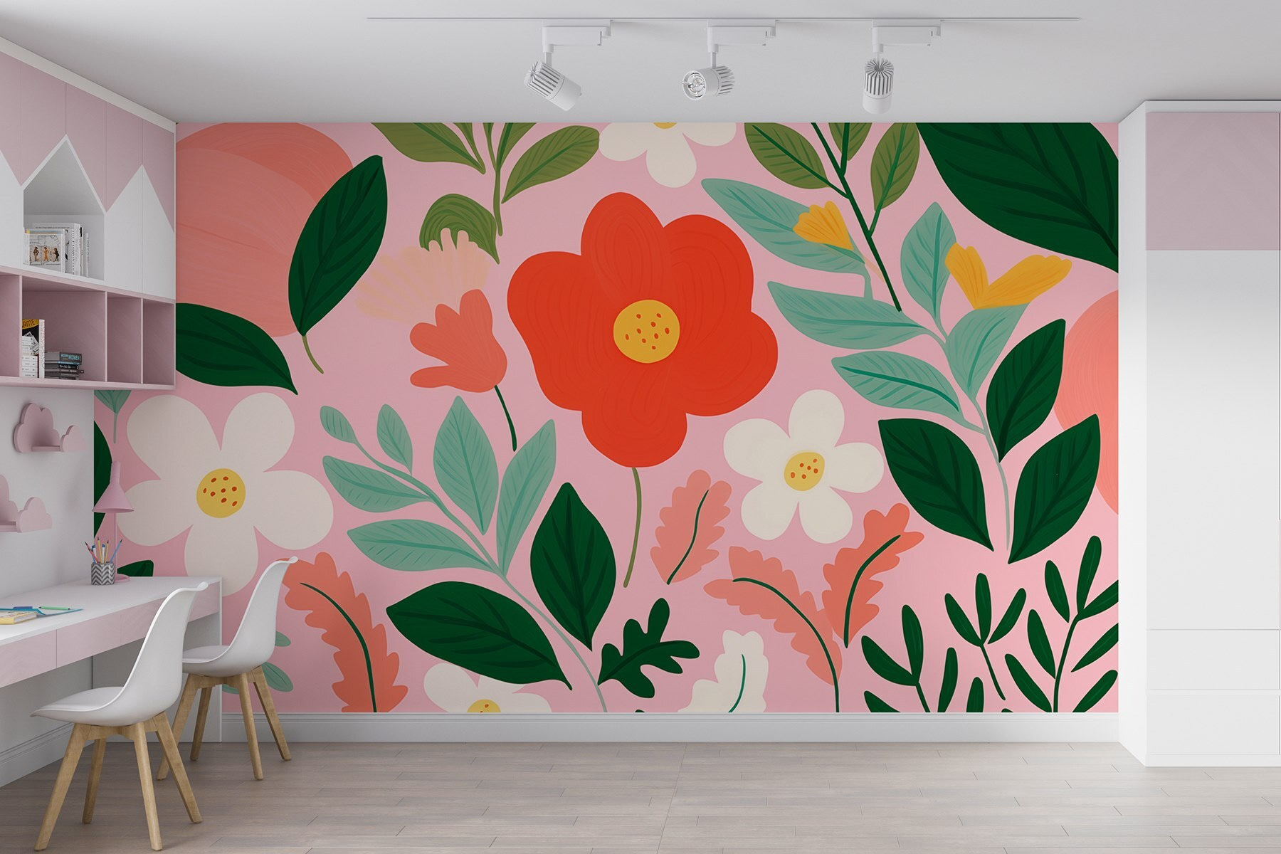 Transforma cualquier habitación en un paraíso floreciente con este alegre mural de flores y hojas. La alegre paleta baila con rojos vibrantes, rosas suaves y verdes frescos, haciendo que parezca primavera todo el año. Imagina que estás en casa, rodeado de este estallido de naturaleza, y de repente te ves transportado a un soleado jardín, lleno de caprichosas flores que parecen animarte. Perfecto para iluminar un salón o crear un acogedor rincón de lectura, este mural es como un abrazo de la naturaleza. Imagínatelo: tomando café, admirando las alegres vibraciones y tal vez soñando despierto con tu próxima aventura al aire libre.