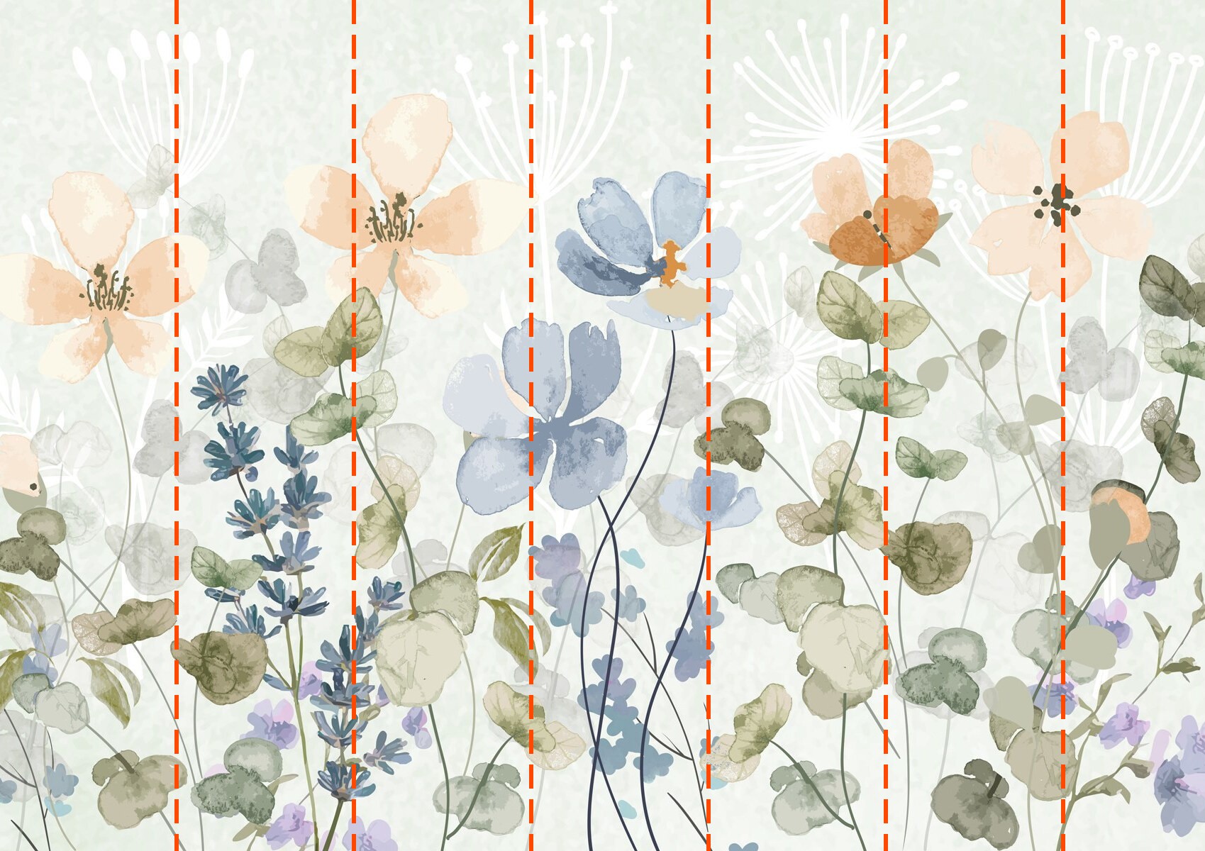 Tu papel pintado se preparará según las dimensiones que nos hayas facilitado durante el proceso de pedido. El lienzo se dividirá en cómodas secciones de hasta 50 cm de ancho cada una.