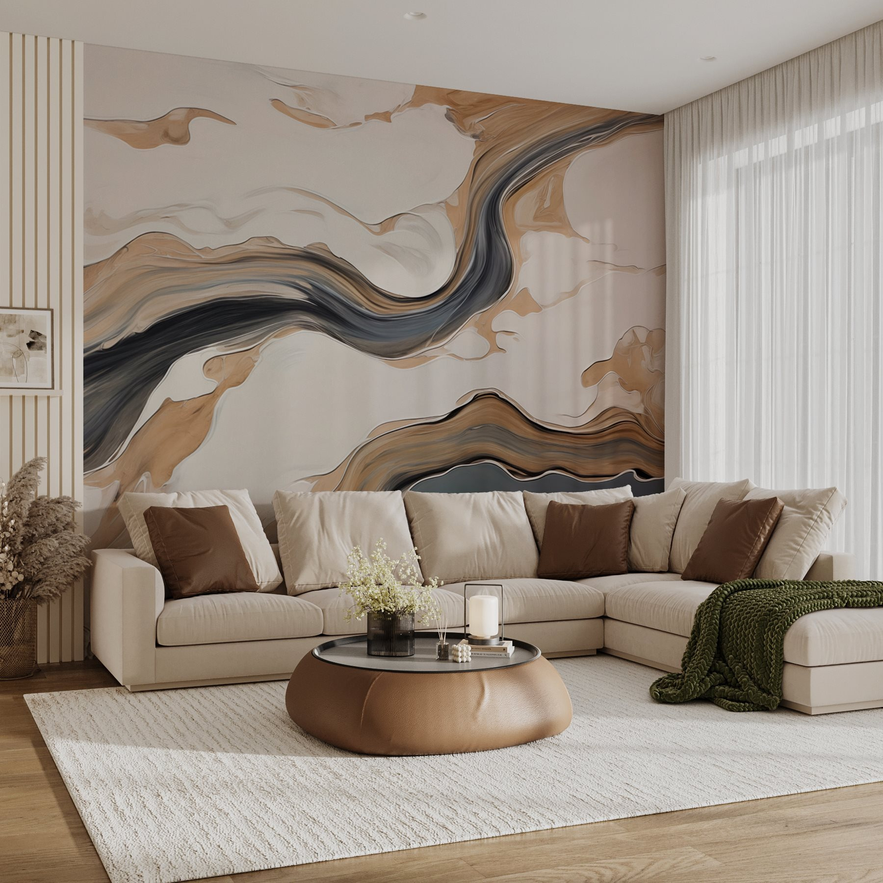Transforme cualquier habitación con este cautivador mural con remolinos de negro y tonos suaves sobre un fondo brillante. Es como adentrarse en un mundo abstracto de ensueño: en un momento admiras la obra de arte y al siguiente despierta tu imaginación. Imagina tardes acogedoras acurrucado con un libro, con las paredes susurrando creatividad y calma. Es como tener una obra de arte que invita a la conversación y al asombro. Perfecto para aquellos que buscan un poco de estilo sin abrumar los sentidos, este mural eleva sin esfuerzo cualquier espacio, haciendo que se sienta como en casa.