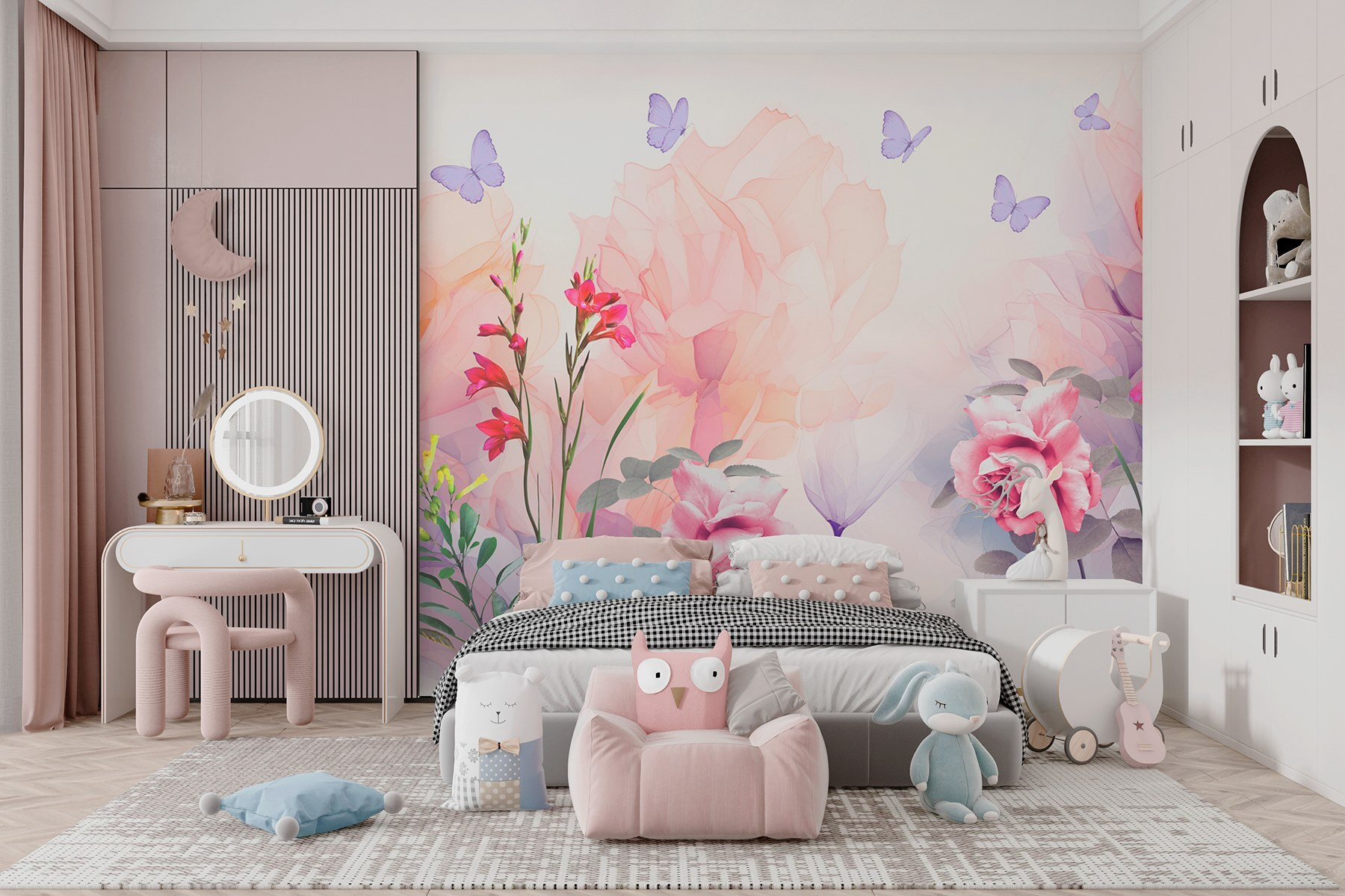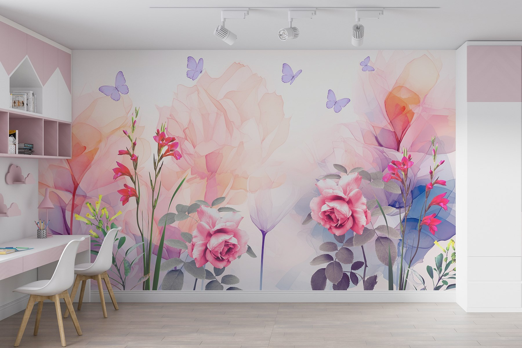 Transforma una pared apagada en un paraíso floreciente con este encantador mural de flores y mariposas. Imagínate descansando en una tarde soleada, con una taza de té a tu lado, mientras las flores vibrantes y los amigos revoloteando alegran tu espacio sin esfuerzo. El diseño de acuarela evoca la primavera: los suaves pétalos se mecen con la brisa y las mariposas bailan a su alrededor, convirtiendo cada mirada en una pequeña escapada a la naturaleza. Perfecto para un rincón acogedor o un salón animado, es como invitar a un jardín al interior, sin la regadera. ¿Quién necesita un pulgar verde cuando tiene esta belleza?