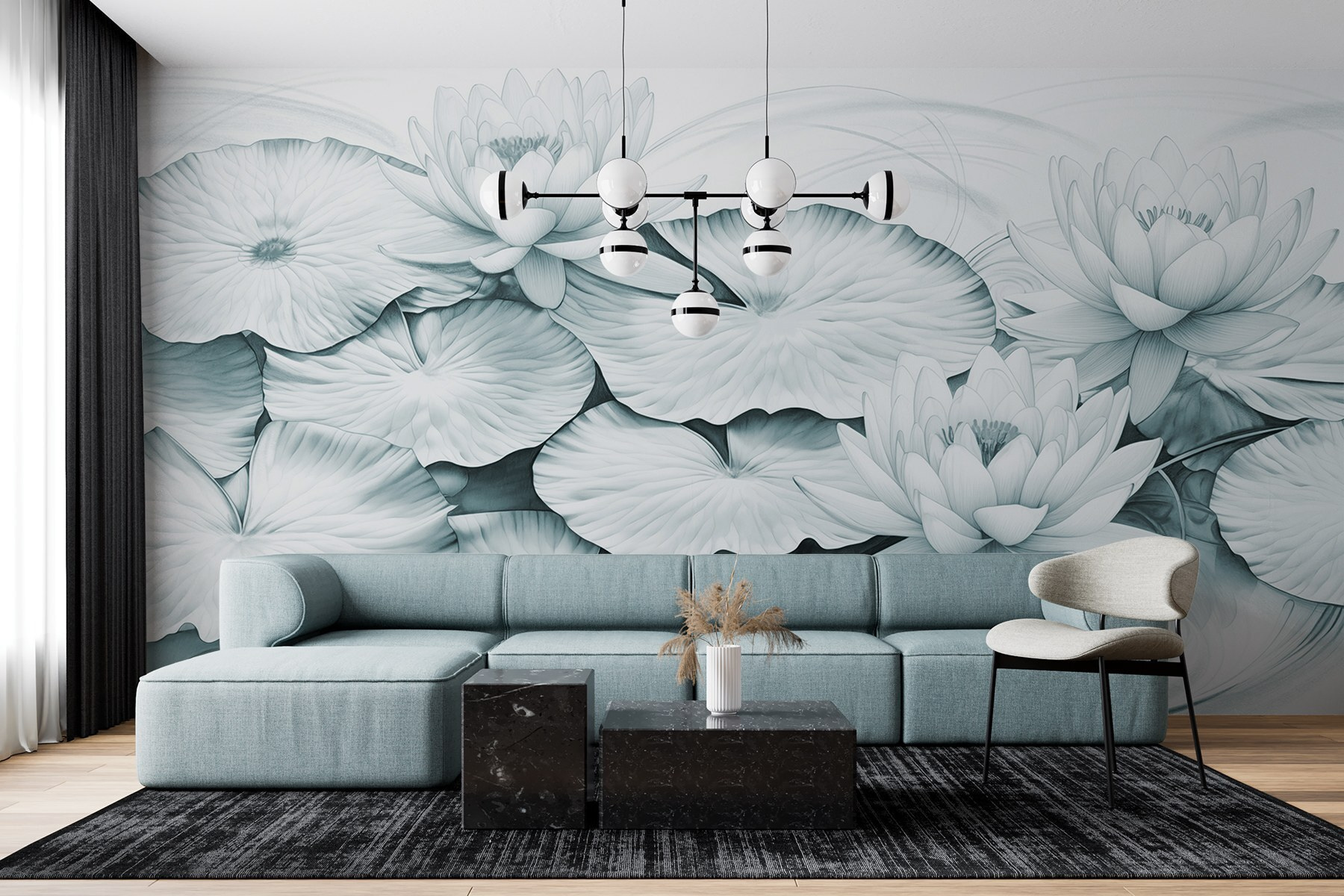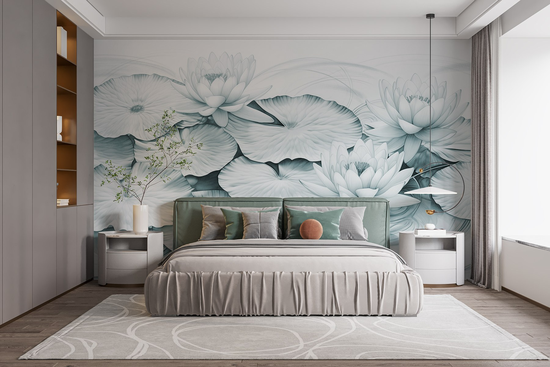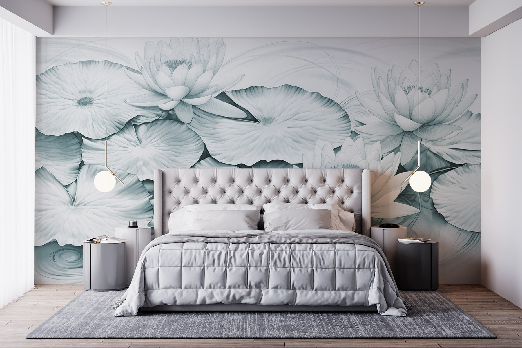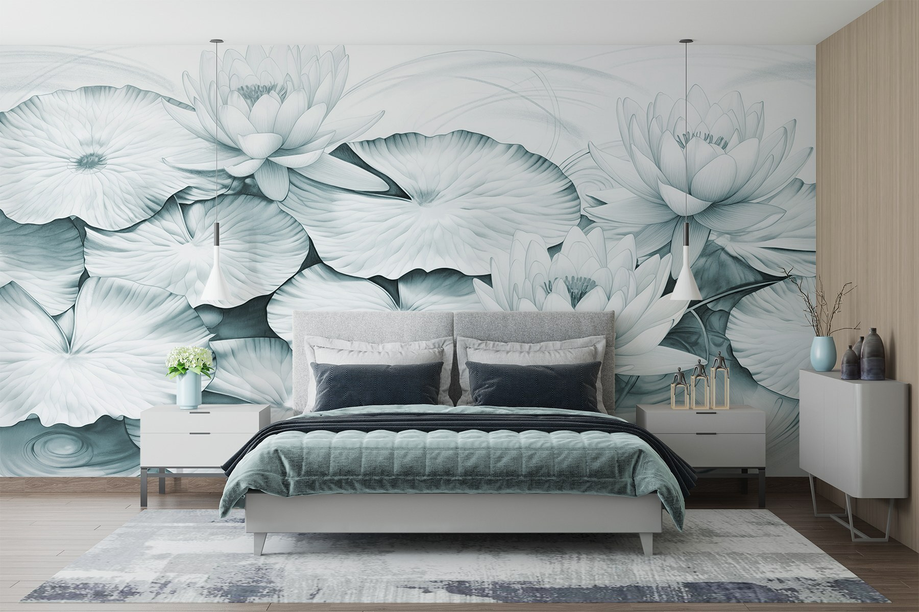 Transforme su espacio con la serena belleza de este mural de pared con un encantador grupo de nenúfares y delicadas hojas. Es como llevar un tranquilo estanque a su habitación, perfecto para soñar despierto o simplemente disfrutar de un momento de tranquilidad. Imagínese tumbado en su sillón favorito, con una taza de té en la mano, mientras los suaves verdes y blancos le envuelven como un suave abrazo. Este mural es ideal para entablar conversaciones, ya sea sobre la naturaleza o sobre tu última obsesión por los libros. Es desenfadado pero cautivador, como una tarde de descanso a la orilla del agua.