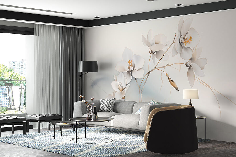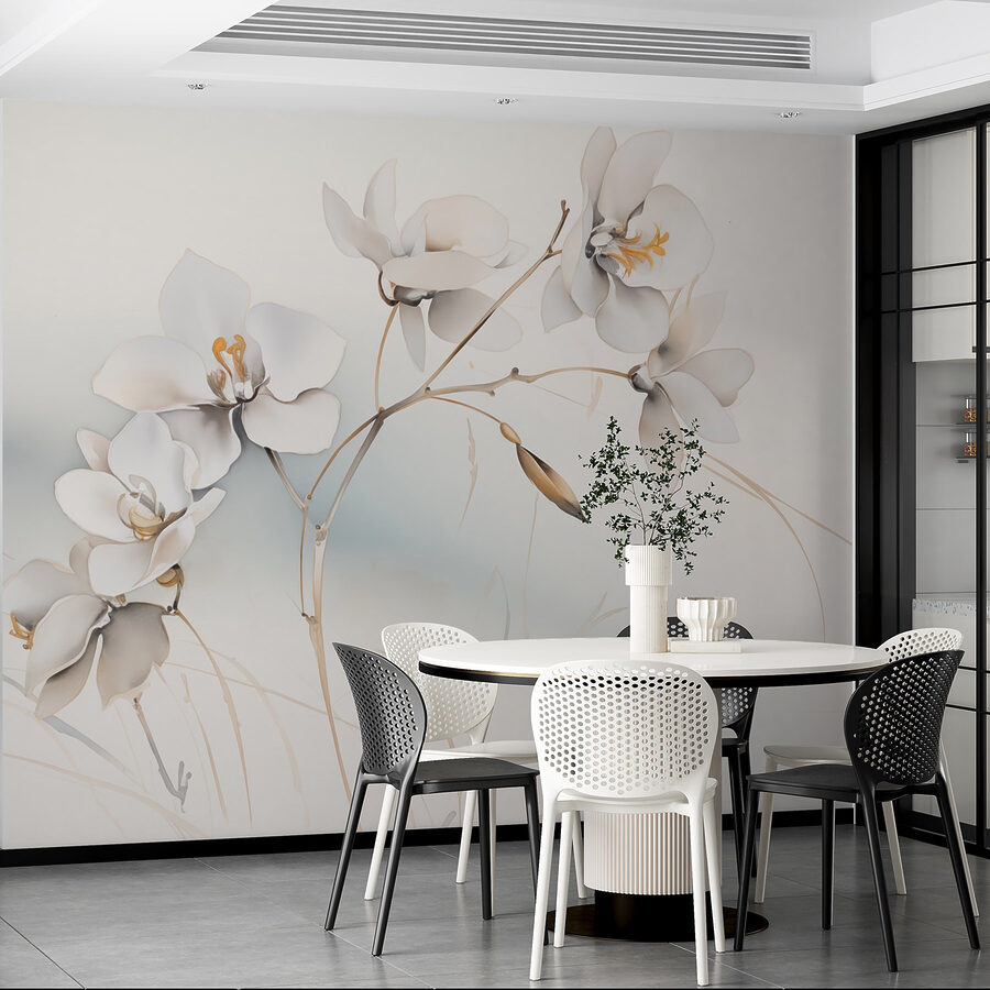 Transforme cualquier habitación con este impresionante mural, con delicadas flores blancas graciosamente posadas en ramas. Imagínese entrar en un espacio que al instante se siente más tranquilo y acogedor. La suave paleta crea una atmósfera serena, perfecta para relajarse después de un largo día. Imagina noches acogedoras contemplando estas flores, como si trajeran un poco de naturaleza al interior. Es como tener un jardín personal sin la regadera y los insectos ocasionales. Un telón de fondo perfecto para momentos artísticos, charlas sinceras o simplemente para soñar despierto. Lleve a casa un toque de encanto floral.