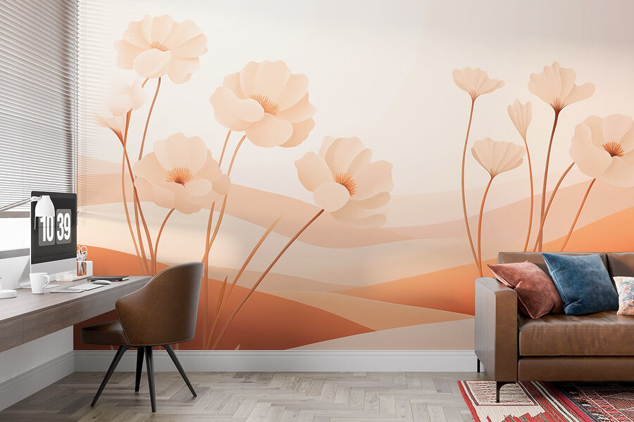 Transformar una pared apagada en un oasis desértico es lo que mejor hace este “Mural Flores blancas en un desierto”. Imagínese adentrarse en un paisaje sereno donde las cremosas flores danzan suavemente contra las suaves y fluidas dunas. Es como la calma después de un aguacero, que insufla vida a tu espacio. Perfecto para un rincón acogedor o incluso para un comedor animado, este mural aporta calidez sin ser abrumador. Imagínese tomando el té mientras sueña despierto, perdido en el ambiente tranquilo. Es una declaración sutil, que susurra estilo y serenidad, perfecta para cualquiera que anhele un toque de naturaleza en el interior.