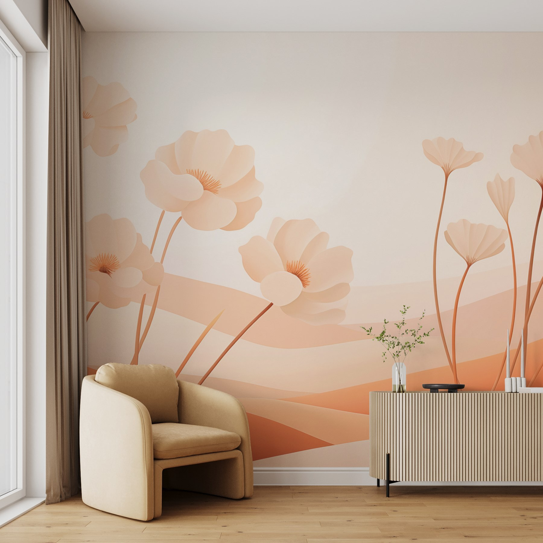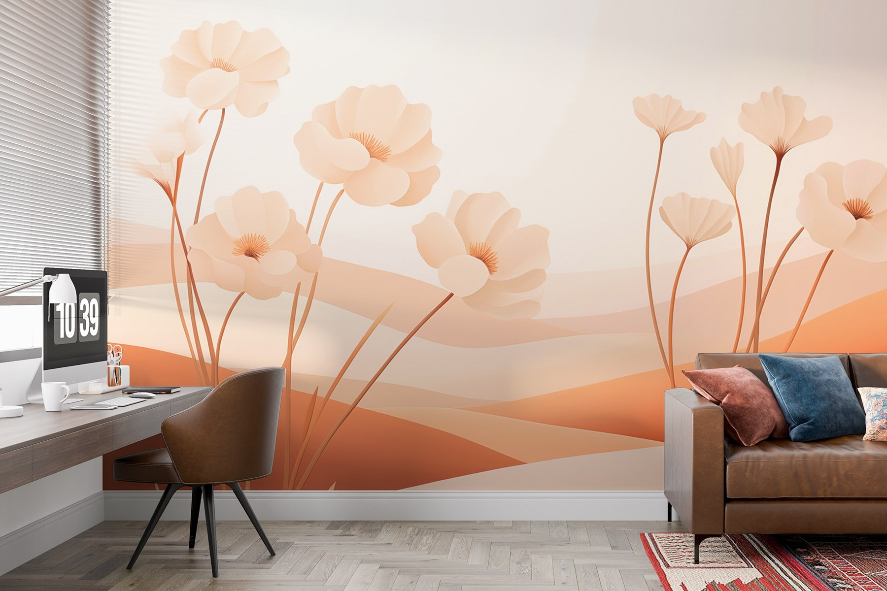 Transformar una pared apagada en un oasis desértico es lo que mejor hace este “Mural Flores blancas en un desierto”. Imagínese adentrarse en un paisaje sereno donde las cremosas flores danzan suavemente contra las suaves y fluidas dunas. Es como la calma después de un aguacero, que insufla vida a tu espacio. Perfecto para un rincón acogedor o incluso para un comedor animado, este mural aporta calidez sin ser abrumador. Imagínese tomando el té mientras sueña despierto, perdido en el ambiente tranquilo. Es una declaración sutil, que susurra estilo y serenidad, perfecta para cualquiera que anhele un toque de naturaleza en el interior.