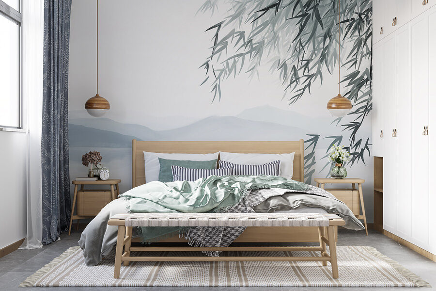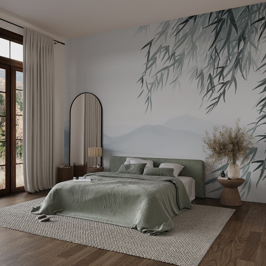 Adéntrese en una serena escapada con este mural de agua, árboles y suaves montañas. Es como llevar una relajante escena de la naturaleza directamente al salón, ¡sin mancharse los zapatos de barro! Imagínatelo: alguien entrando, respirando hondo mientras se impregna de los suaves colores y las tranquilas vibraciones. Perfecto para un rincón de lectura acogedor o para esa pared que necesita un poco más de amor. Añade una silla acogedora, tal vez una taza de té y, de repente, estarás inmerso en un momento de tranquilidad. Se trata de buenos sentimientos y un toque de aventura, donde cada mirada a este mural derrite el ajetreo y el bullicio. Transforma tu espacio en un refugio tranquilo con esta obra de arte de ensueño.