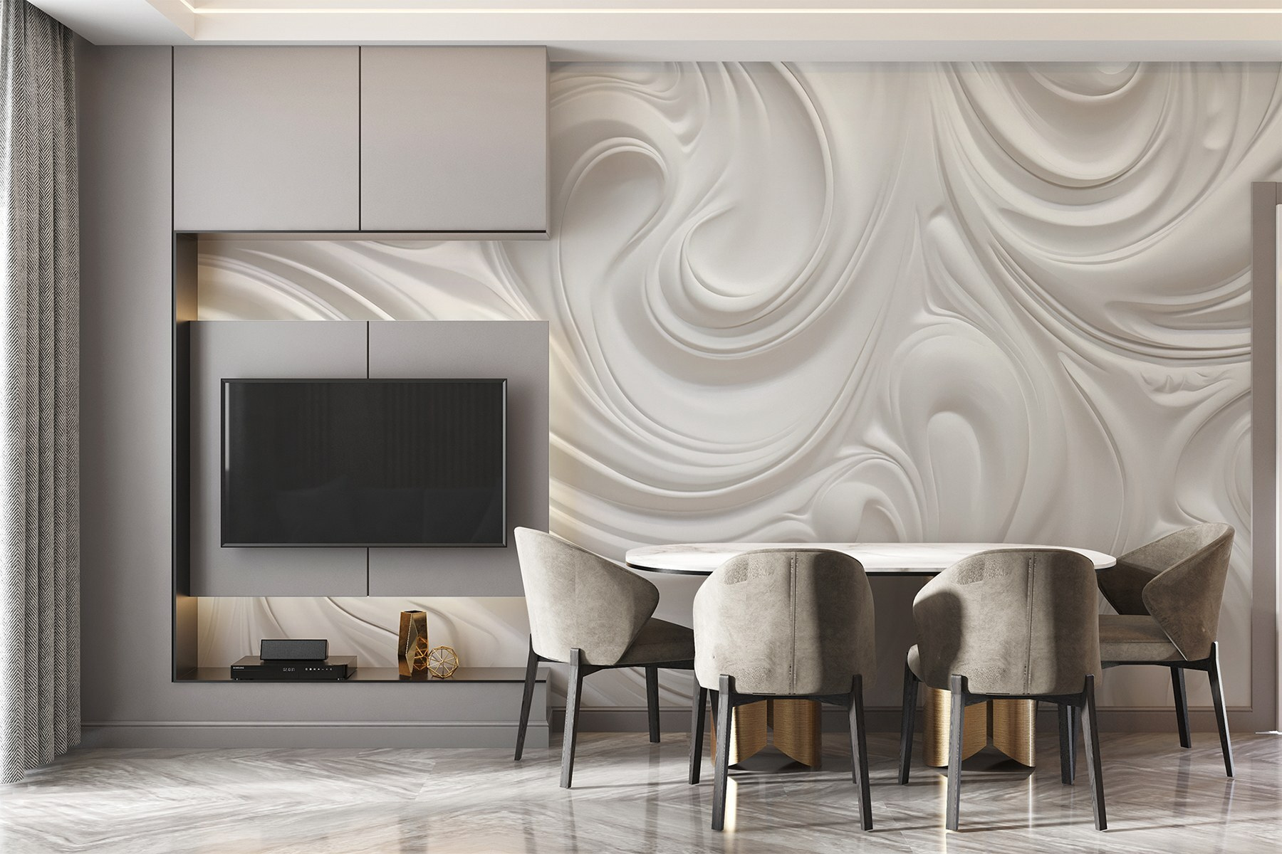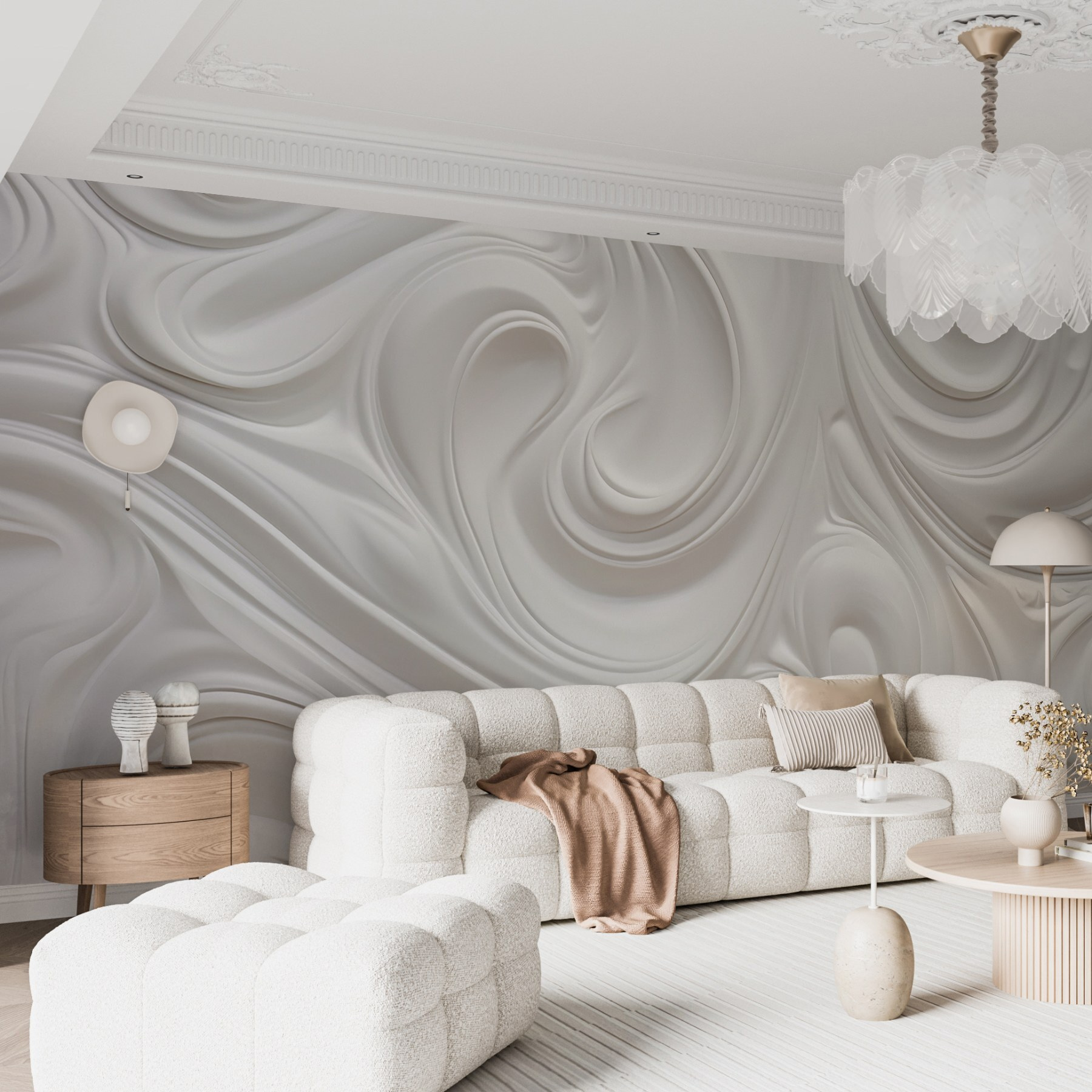 Transforme su espacio con este mural de pared, que muestra una danza de ensueño de remolinos blancos. Es como traer una suave brisa al interior o una suave nube que te envuelve. Imagínese despertarse con este apacible telón de fondo, sintiéndose un poco más ligero con cada mirada. Perfecto para cualquier habitación, equilibra sin esfuerzo el estilo moderno con un toque de fantasía. Es el tipo de mural que puede inspirar ensoñaciones o suscitar pensamientos creativos. ¡Hola, ideas para proyectos artísticos! Eleva esas paredes y deja que el encanto de las formas fluidas añada un toque único a tu hogar. ¿Quién iba a decir que las paredes podían tener tanta vida?