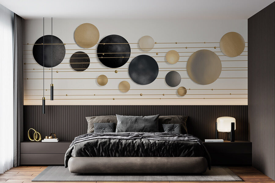 Transforma tu espacio de forma que desate la alegría. Este mural, con una divertida mezcla de círculos y líneas, añade un toque artístico que hará que todo el mundo se quede boquiabierto. Es como tener una obra de arte moderno en la pared, perfecto para salones acogedores u oficinas elegantes que necesitan un poco de personalidad. Imagínese a los invitados entrando, echando un vistazo al mural y diciendo: “¡Vaya, qué llamativo!”. La mezcla de formas crea un ritmo que casi puede hacerte sentir como si estuvieras atrapado en un baile. Es sutil y llamativo a la vez, un regalo visual que aporta calidez sin resultar demasiado llamativo. Perfecto para quienes disfrutan con un toque de fantasía.